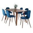 Folia Pebble - 7 Piece Mid-Century Modern Dining Set - Blue / Walnut
