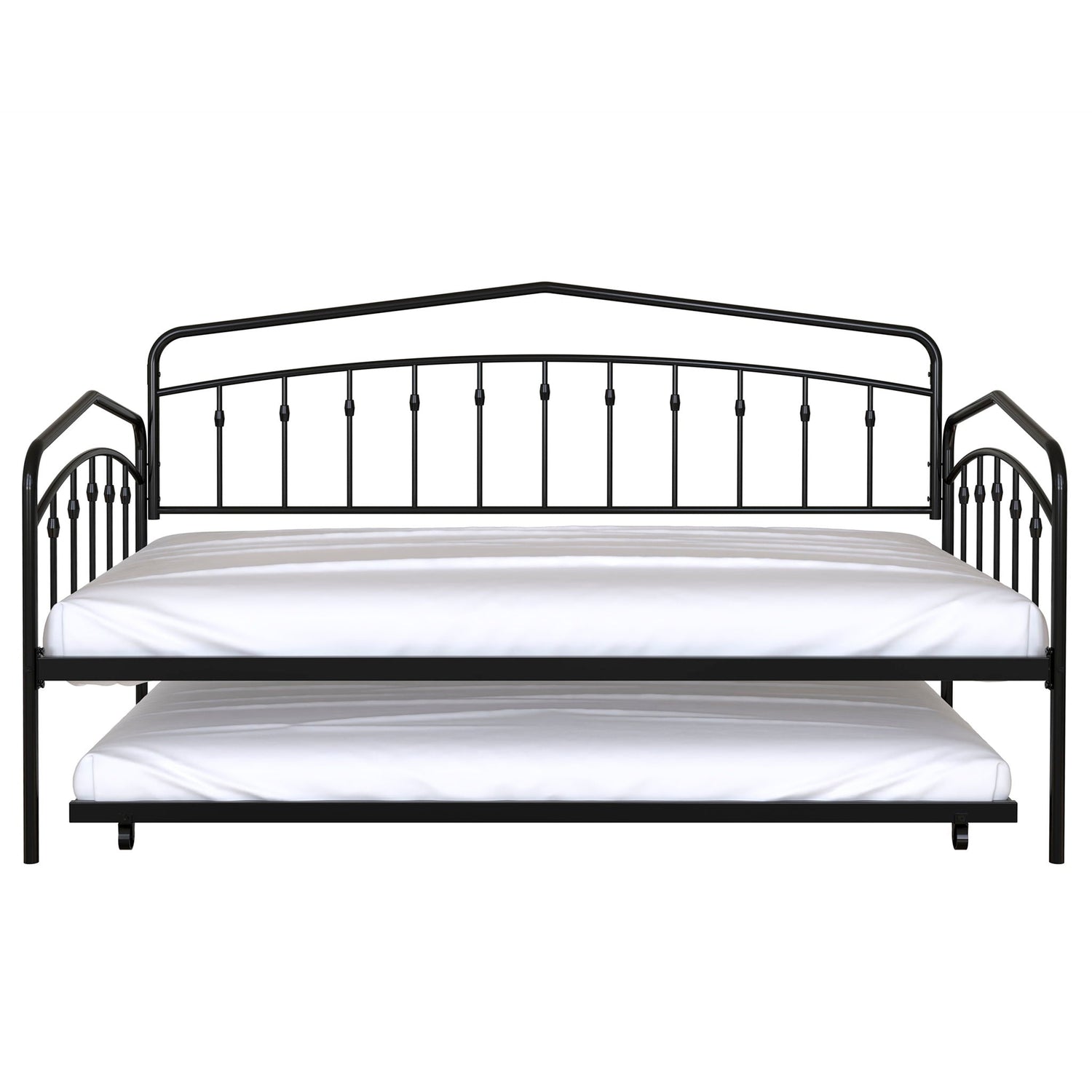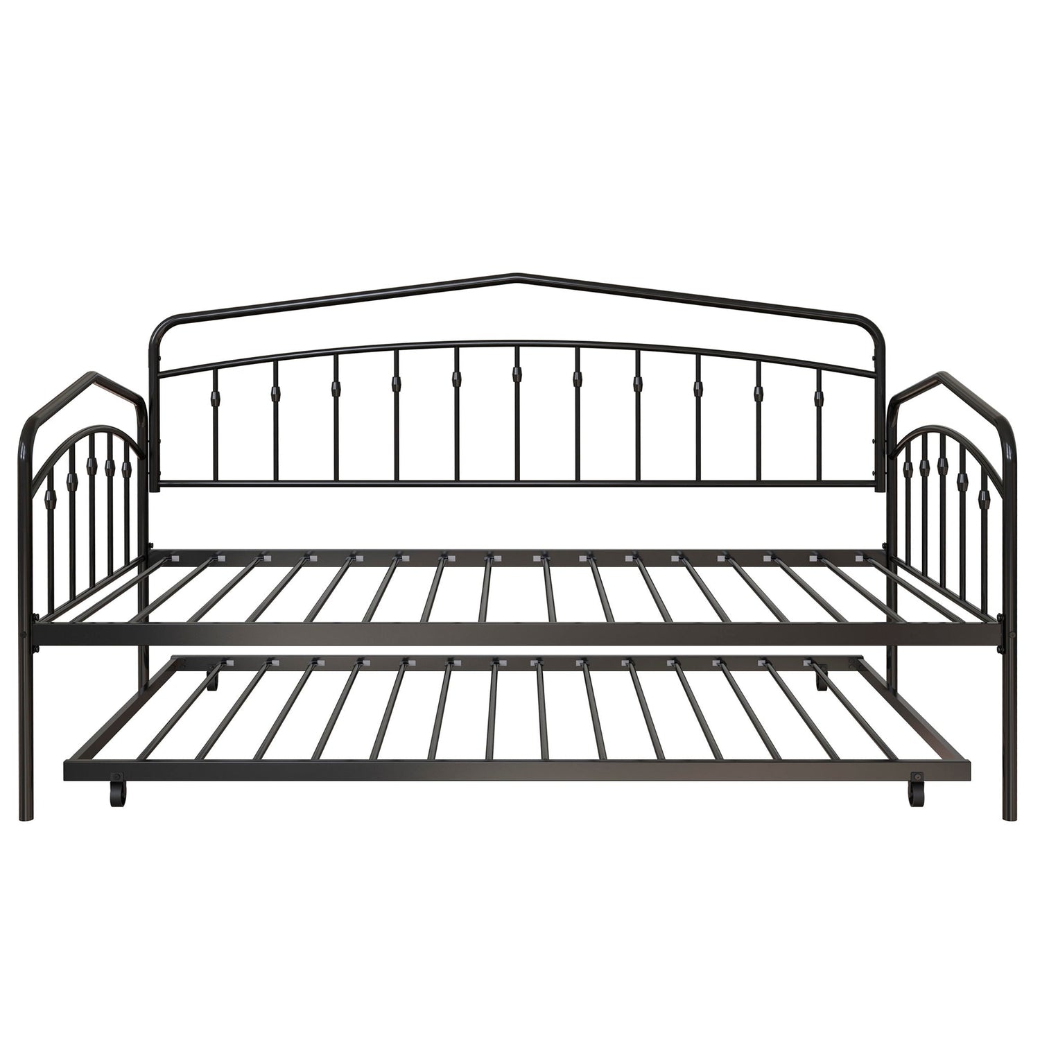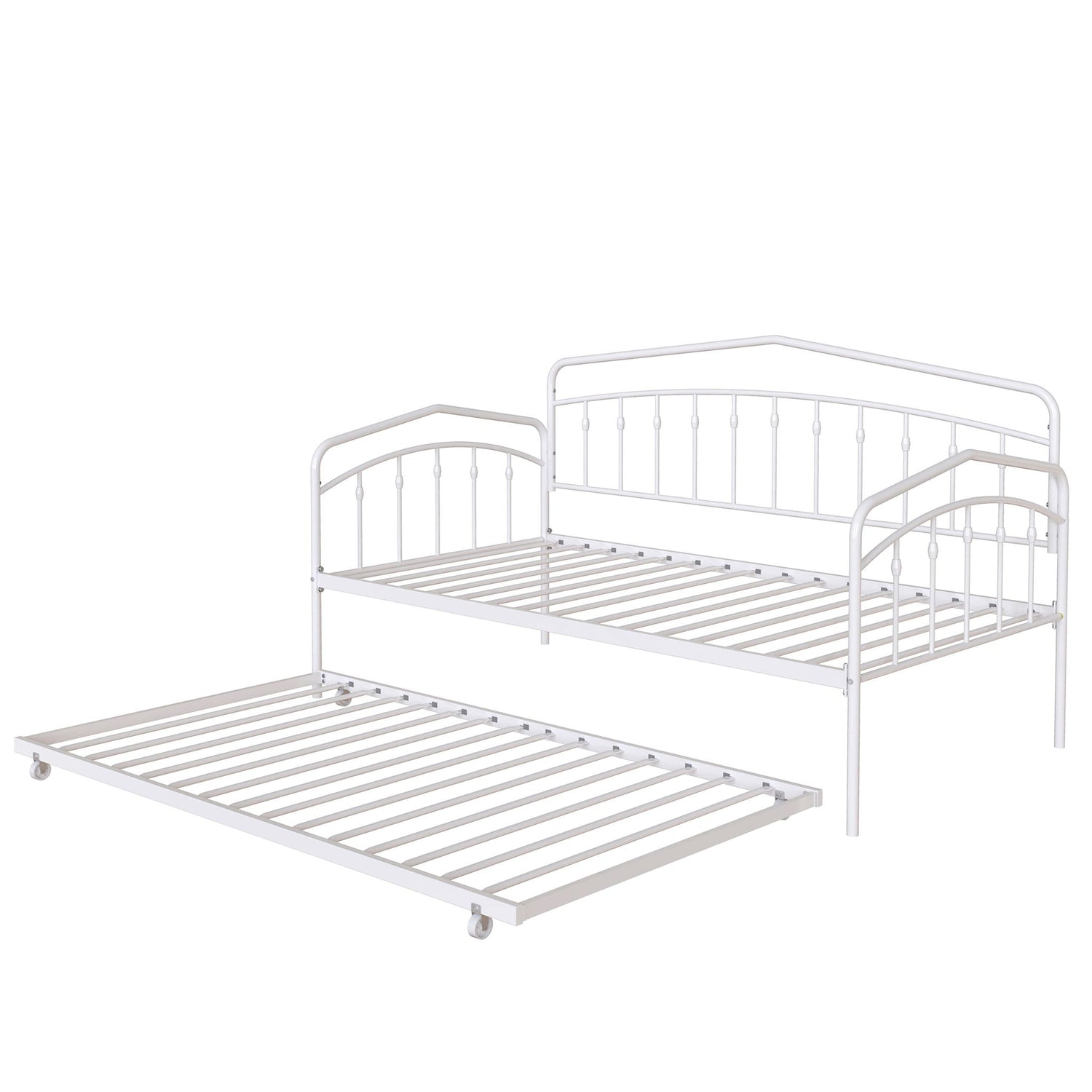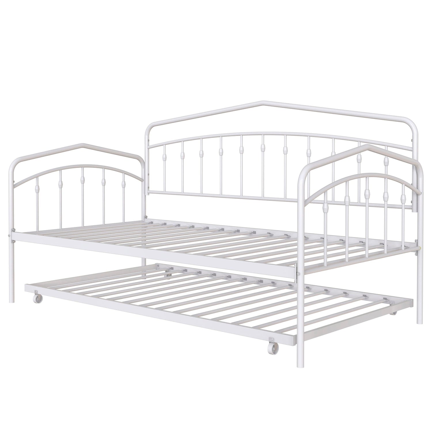 - Durable Metal Frame: Features secured metal slats for support, includes a trundle with easy-glide casters for extra sleeping space.