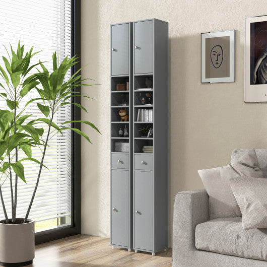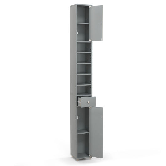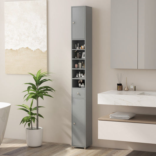 Freestanding Slim Bathroom Cabinet with Drawer and Adjustable Shelves-Gray