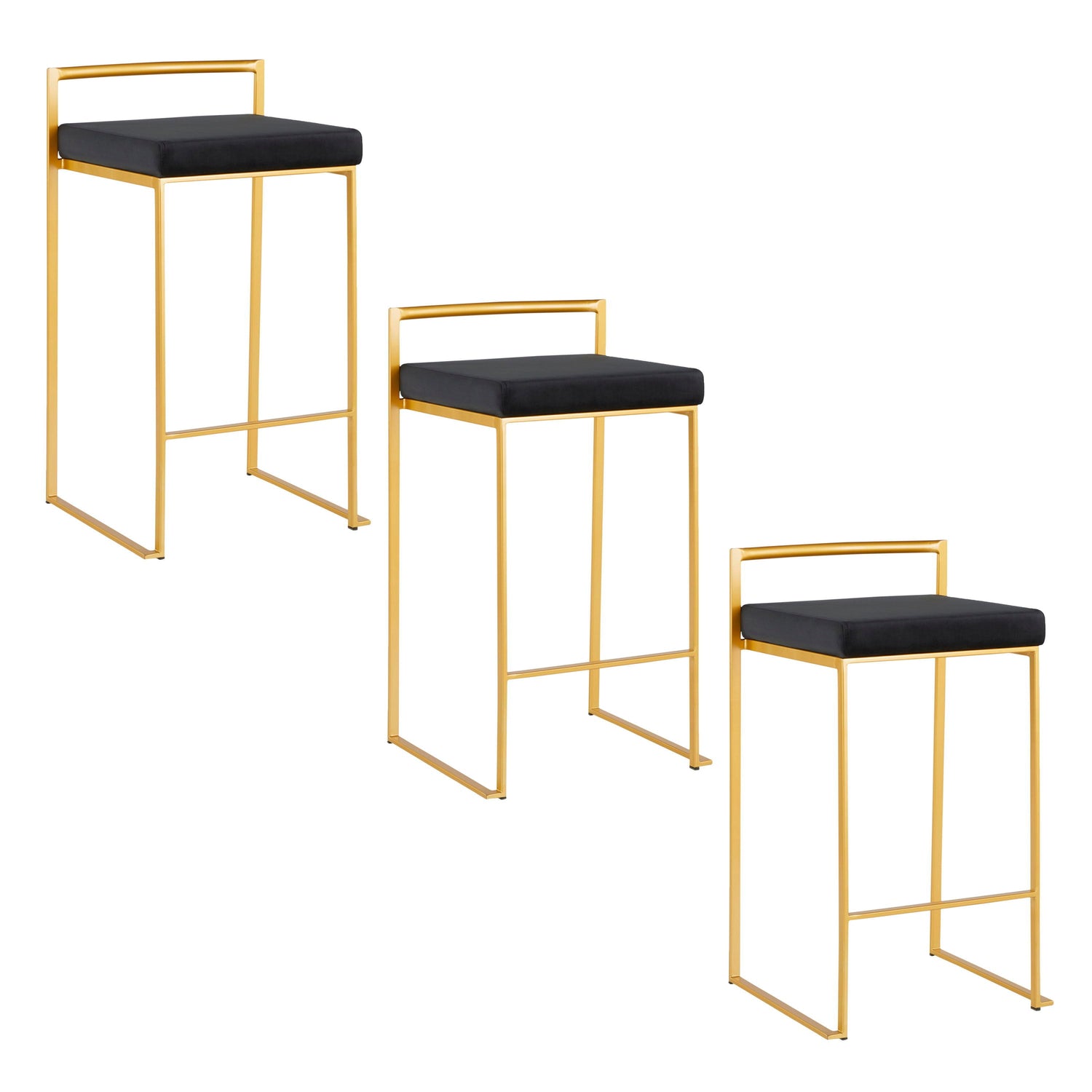 Fuji - Contemporary Counter Stool (Set of 3) - Black / Gold