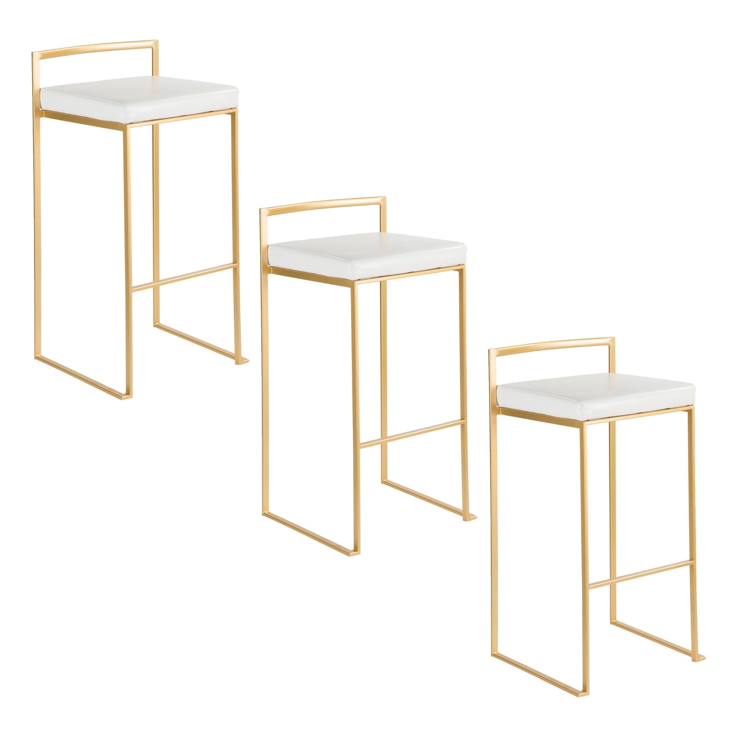 Fuji - Contemporary Stackable Barstool (Set of 3) - Gold / White