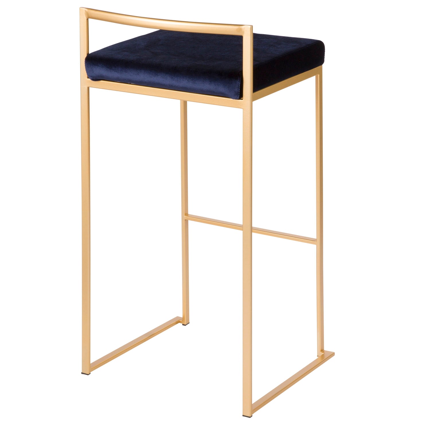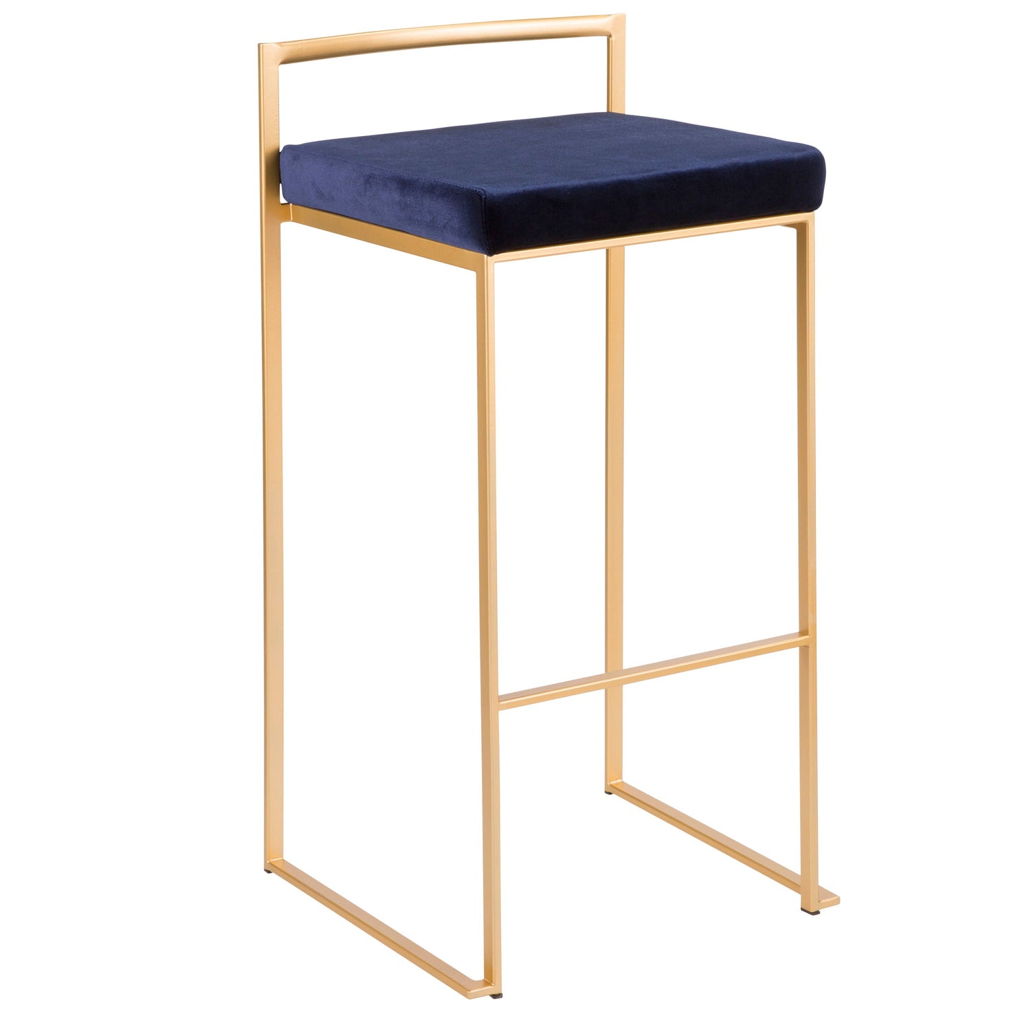 Fuji - Contemporary / Glam Stackable Barstool (Set of 2) - Gold / Blue