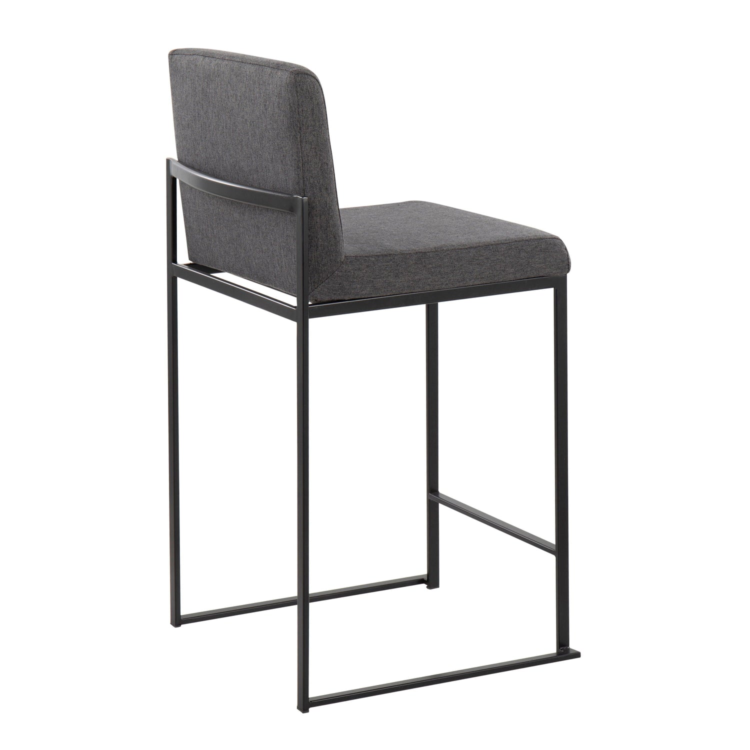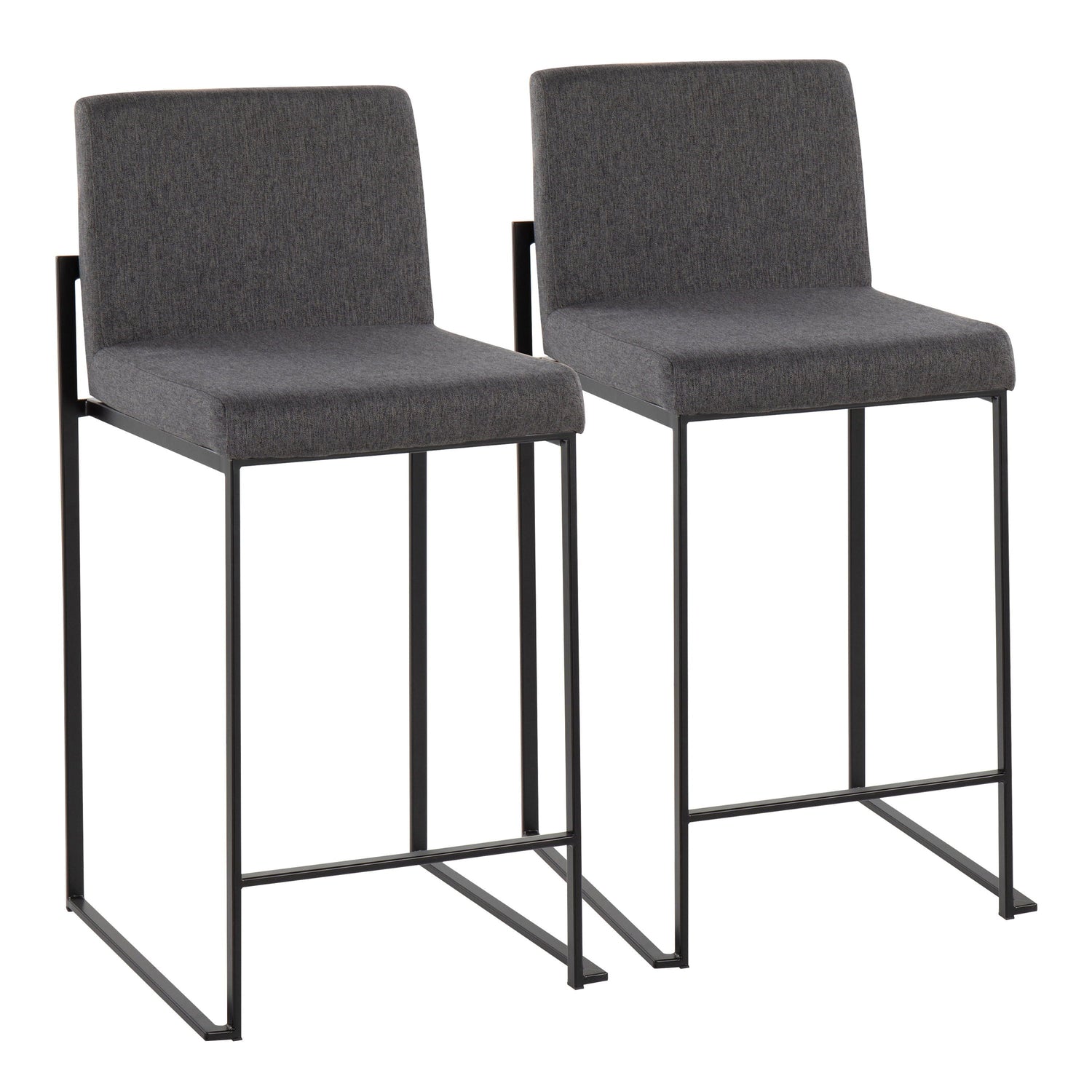 Fuji - Contemporary High Back Counter Stool (Set of 2) - Black / Charcoal