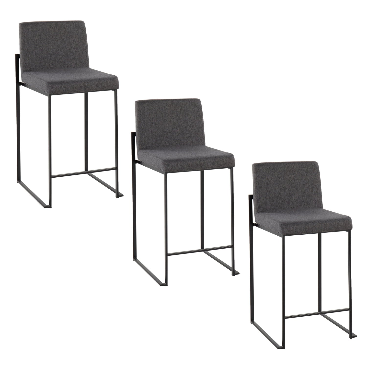 Fuji - Contemporary High Back Counter Stool (Set of 3) - Gray / Black