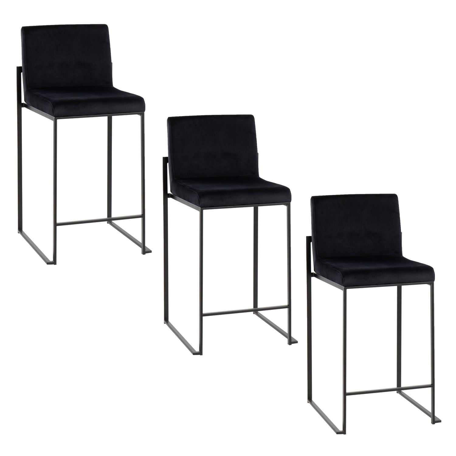 Fuji - Contemporary High Back Counter Stool (Set of 3) - Black