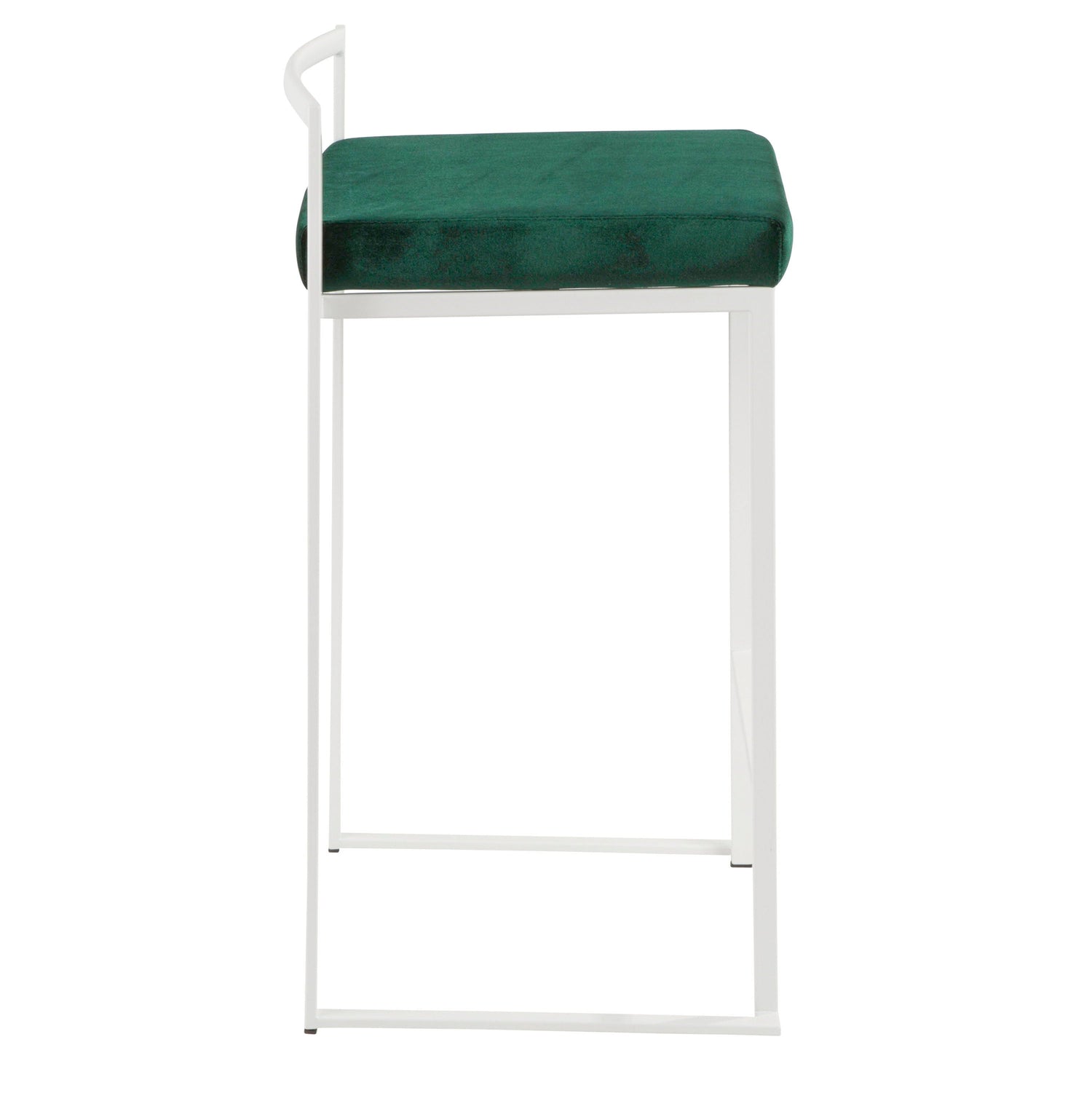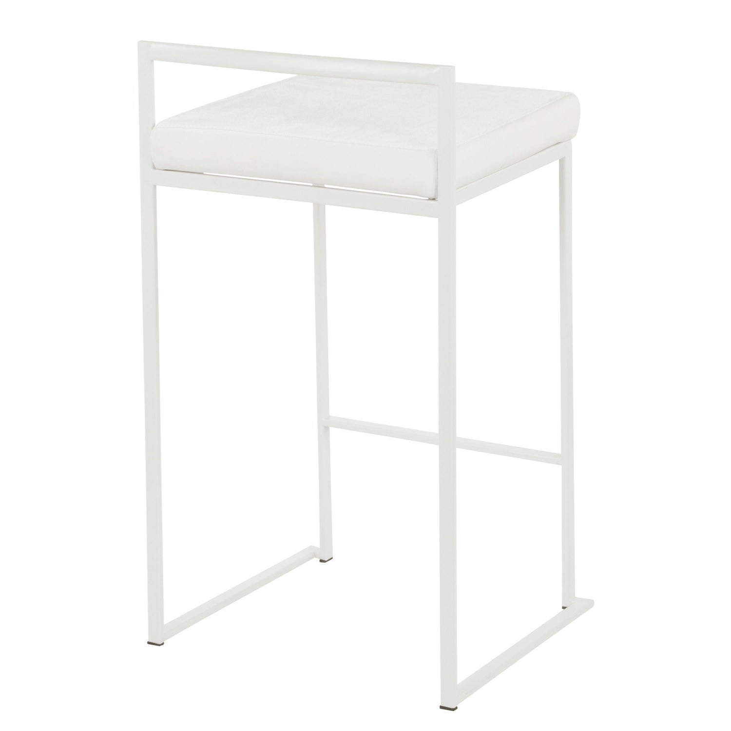 Fuji - Contemporary Stackable Counter Stool (Set of 2) - White - Velvet