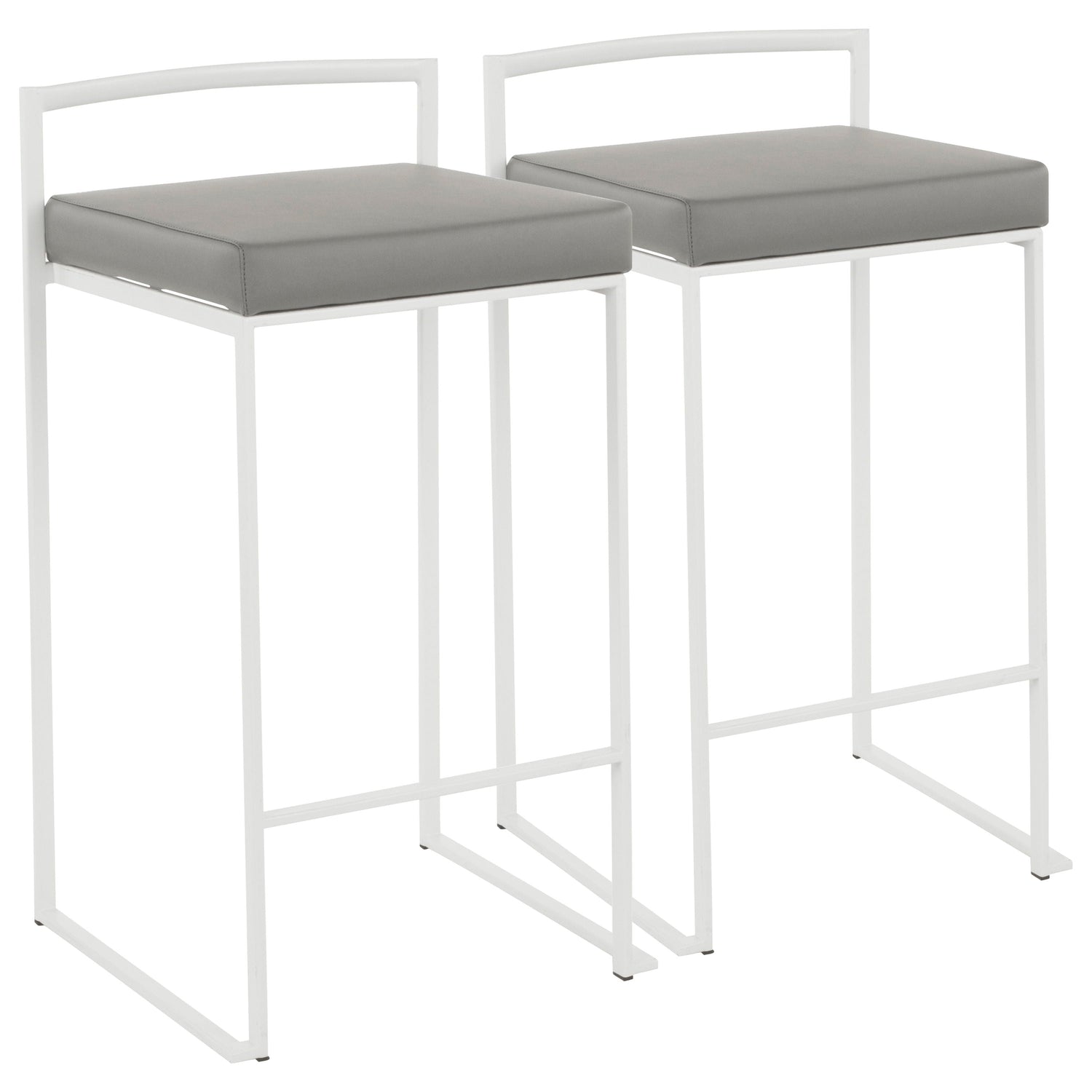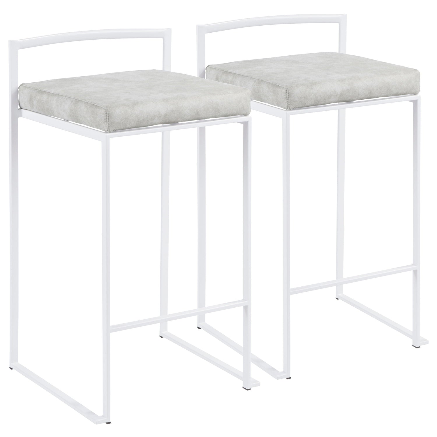 Fuji - Contemporary Stackable Counter Stool (Set of 2) - White / Gray