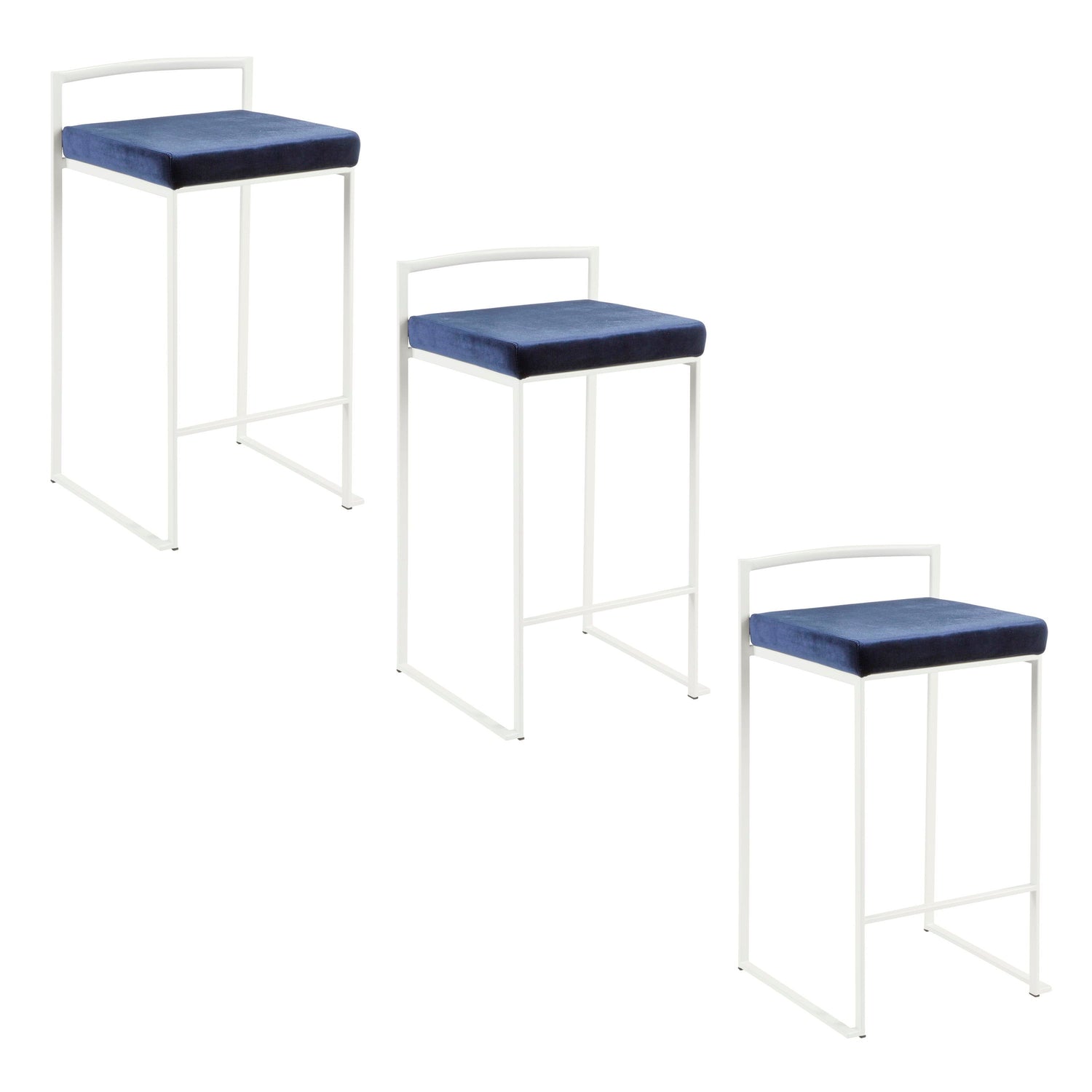 Fuji - Contemporary Stackable Counter Stool (Set of 3) - White / Blue
