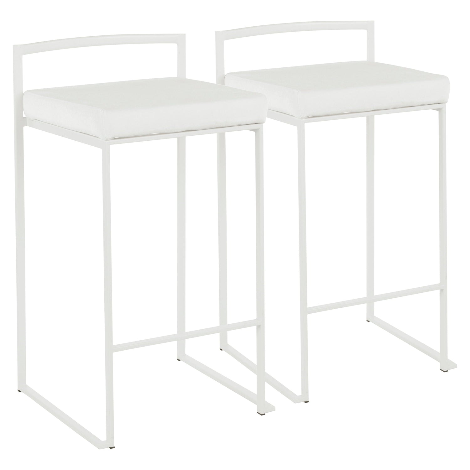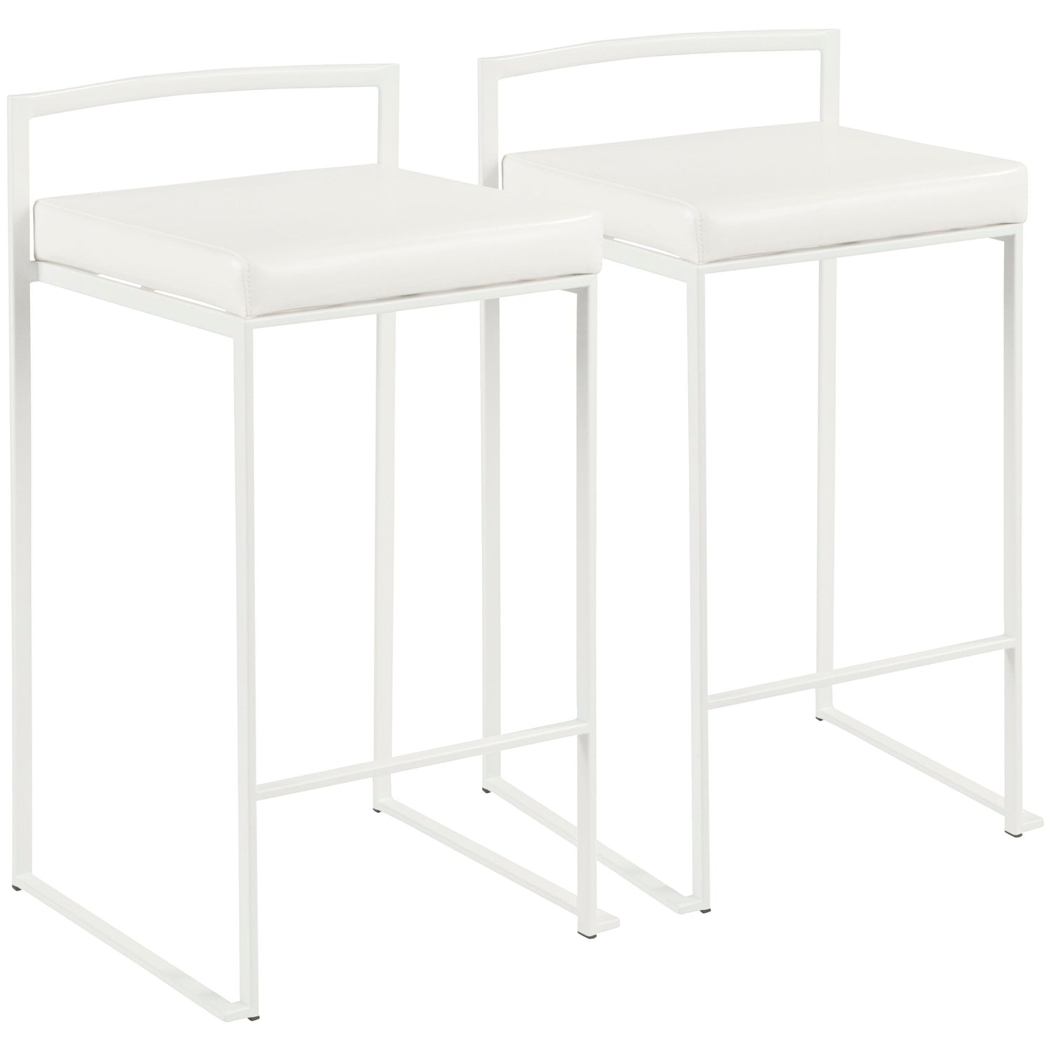 Fuji - Contemporary Stackable Counter Stool (Set of 2) - White - Faux Leather