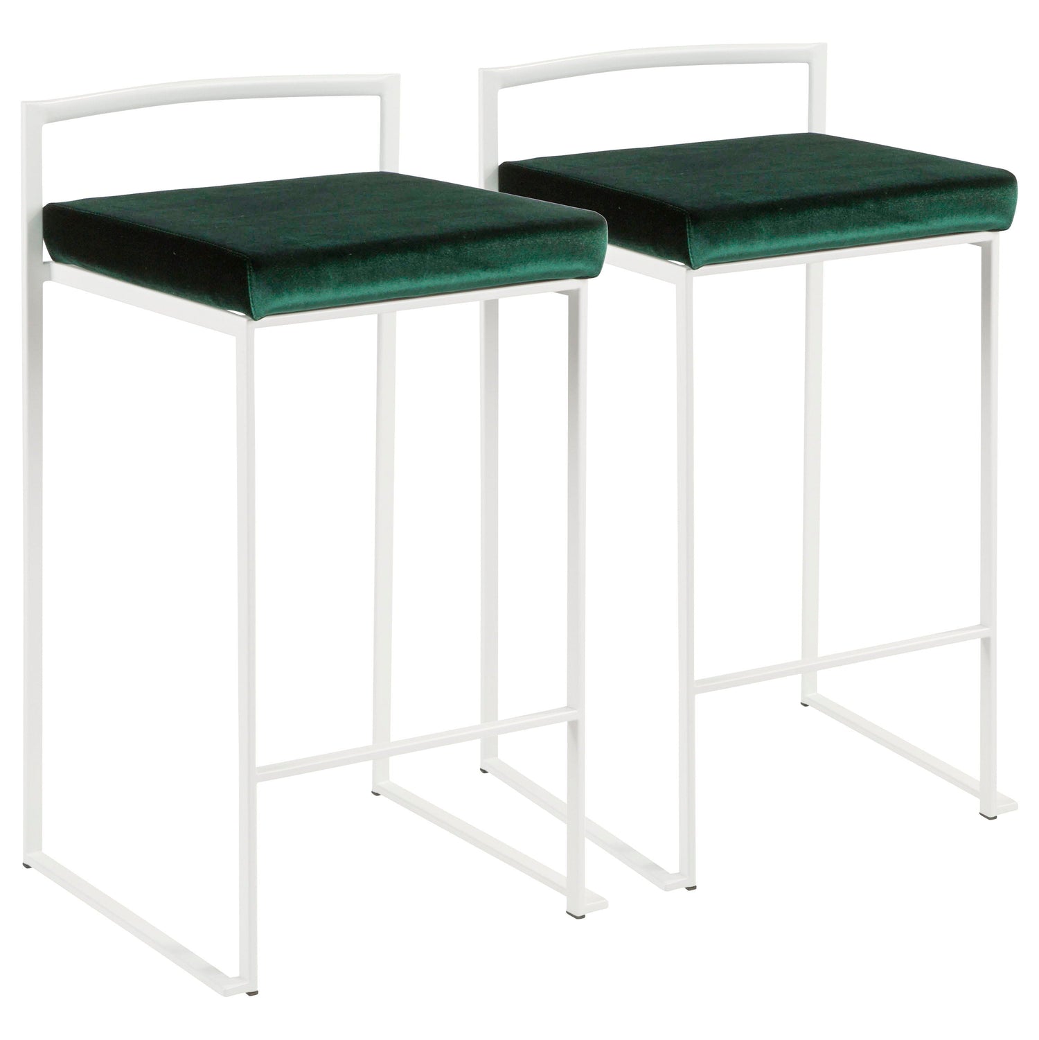 Fuji - Contemporary Stackable Counter Stool (Set of 2) - White / Green