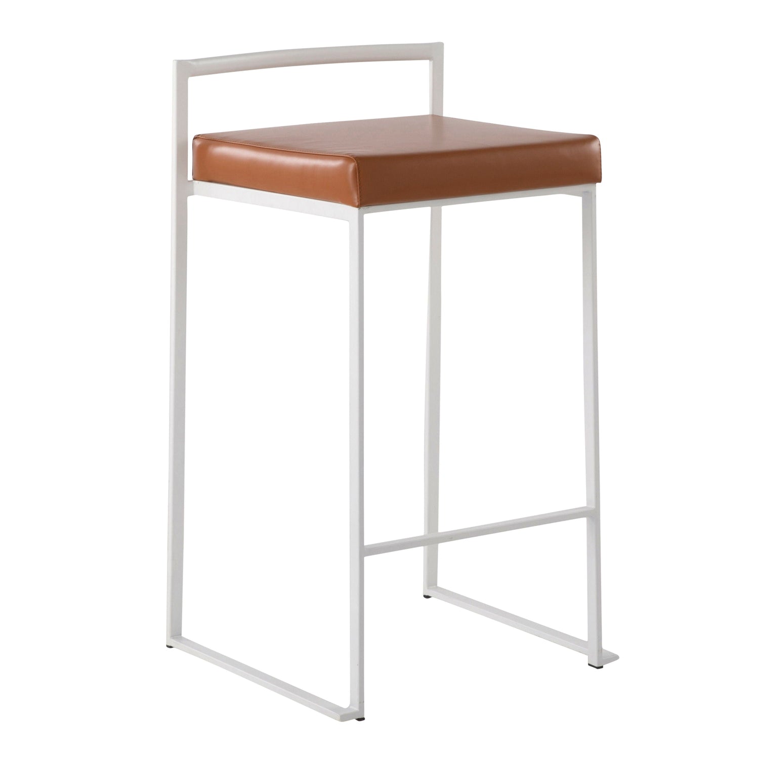 Fuji - Contemporary Stackable Counter Stool (Set of 2) - White / Camel