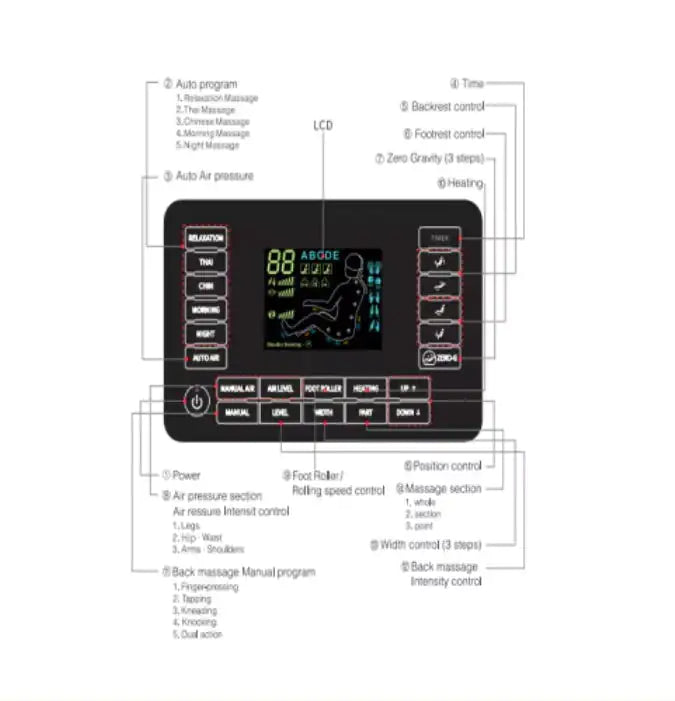 Product Name:Full Body Zero Gravity Shiatsu Massage Chair L-Track Recliner with Airbag Speaker LCD Screen Remote Control Voice Control Back/Leg Heat