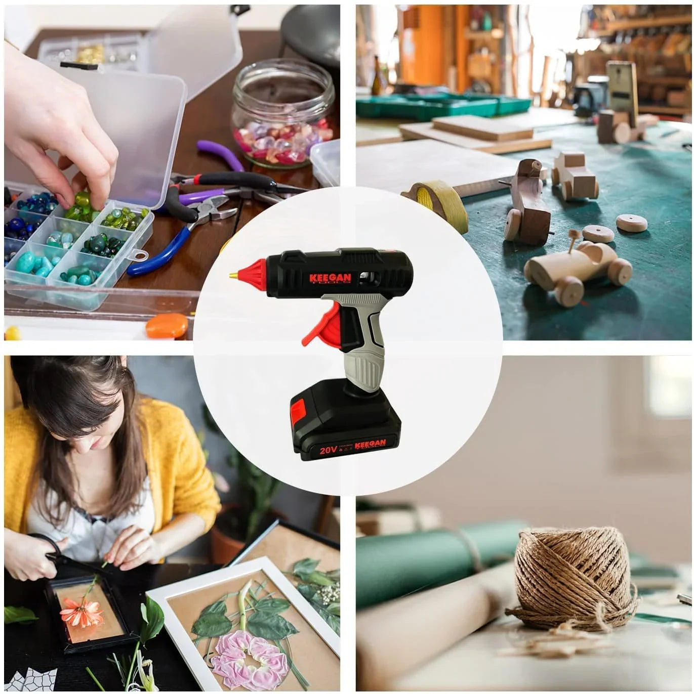 Full Size Cordless Professional 20V Hot Melt Glue Gun Kit Rechargeable 2 Battery
