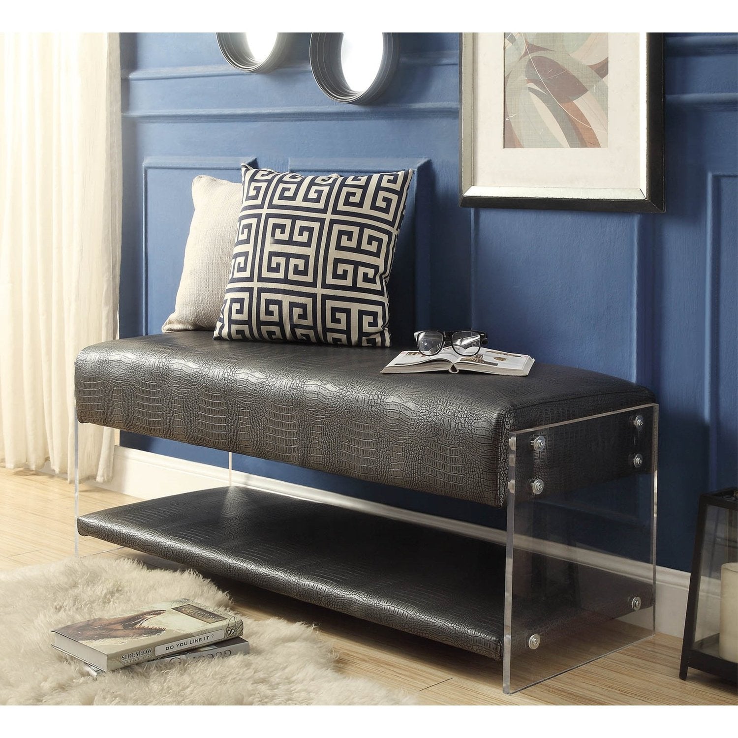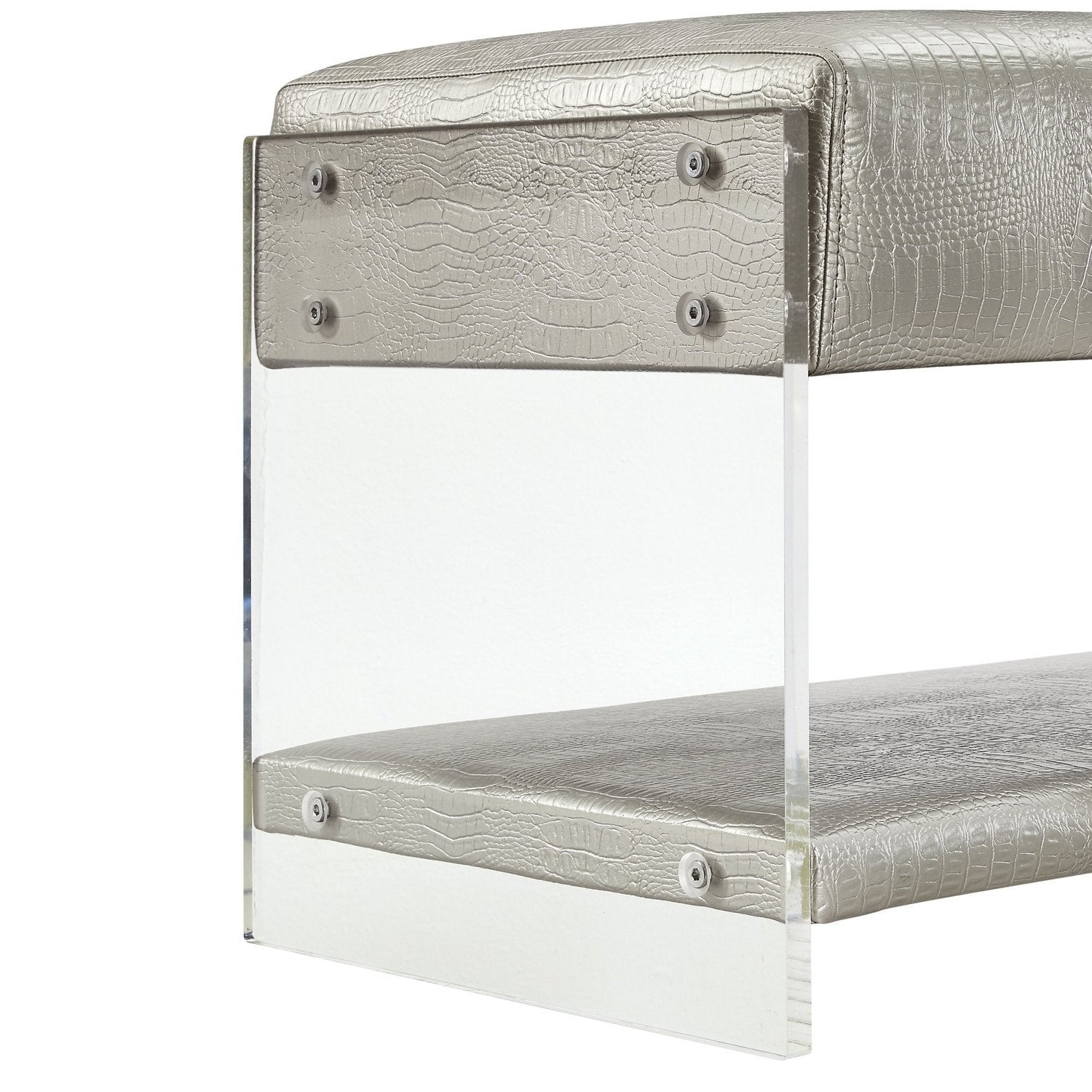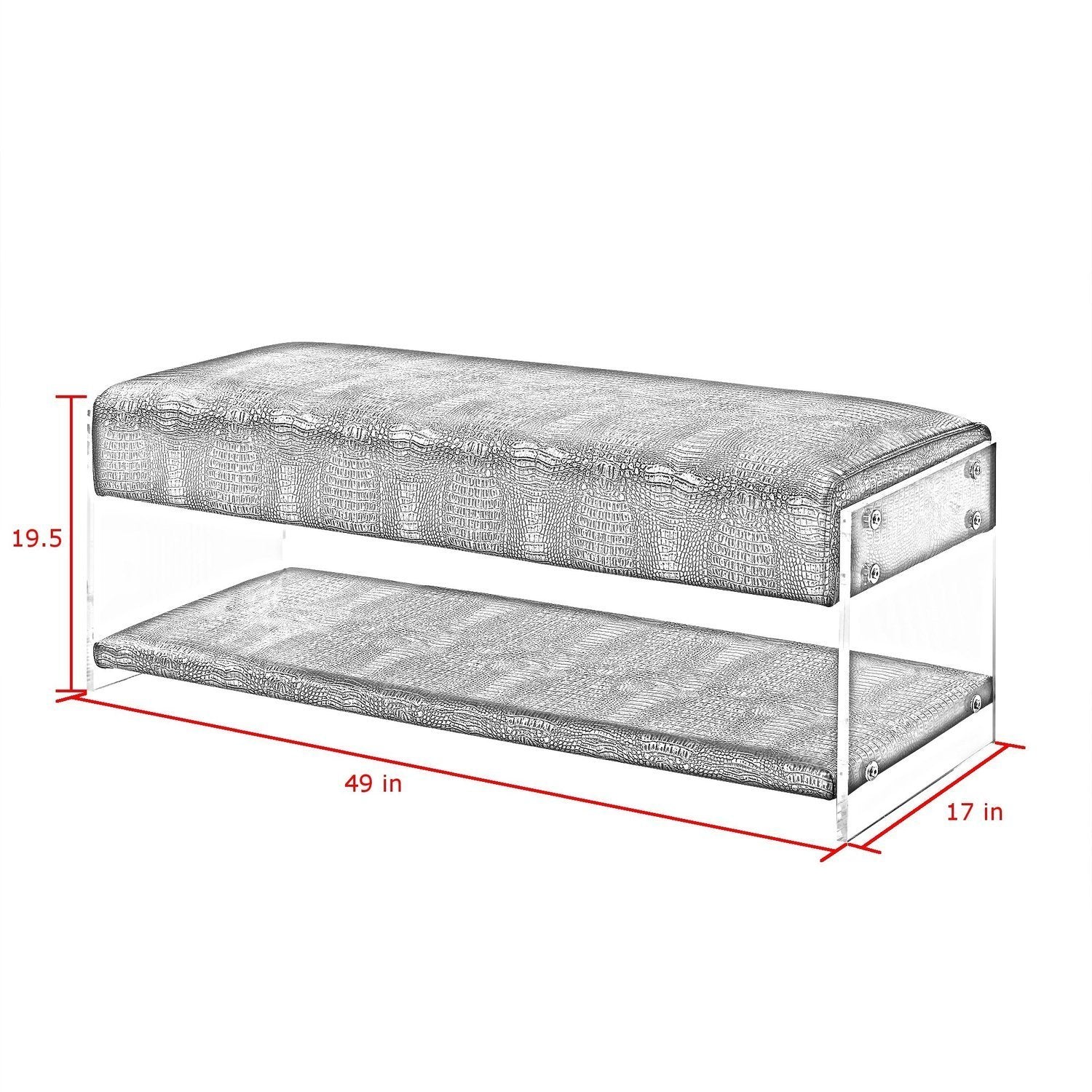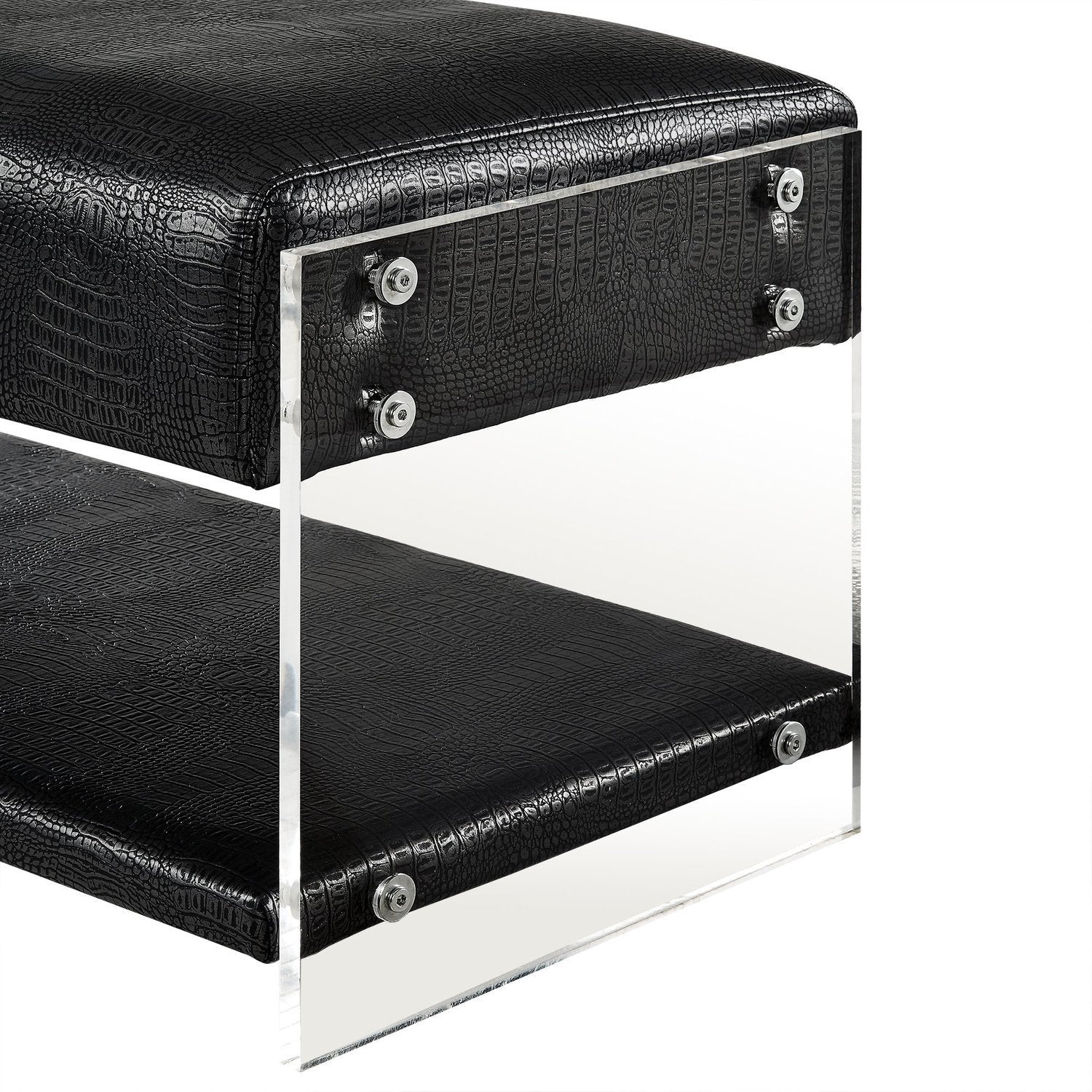 - GLAM - Bonded croc embossed PU leather bench with modern clear acrylic sides.