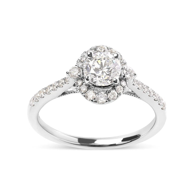 GIA Certified 14k White Gold 4/5 Cttw Diamond Halo Engagement Ring (G-H Color, SI1-SI2 Clarity)
