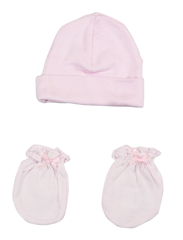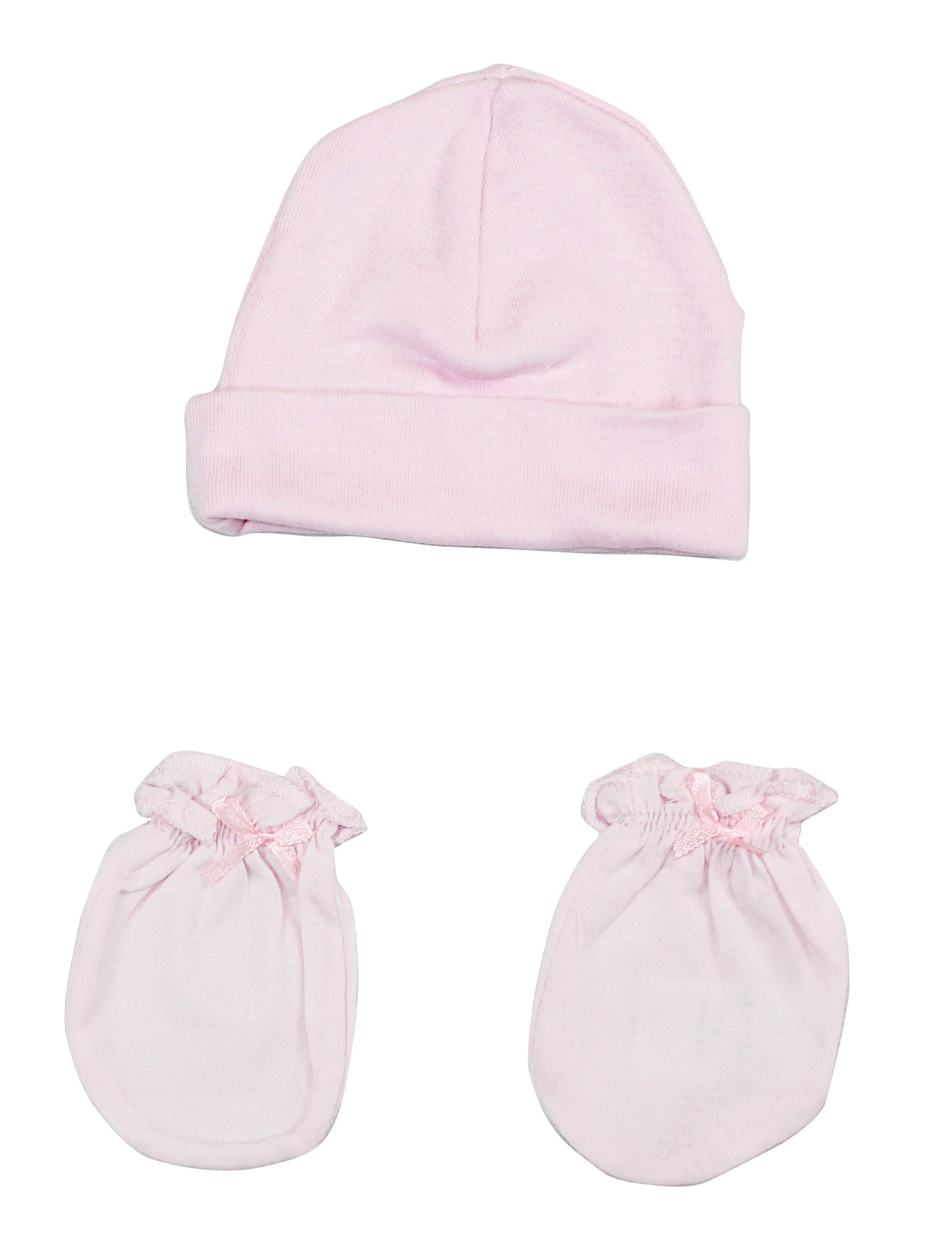 Pink Baby Cap (100% Cotton), Pink Infant Mittens (Jersey)