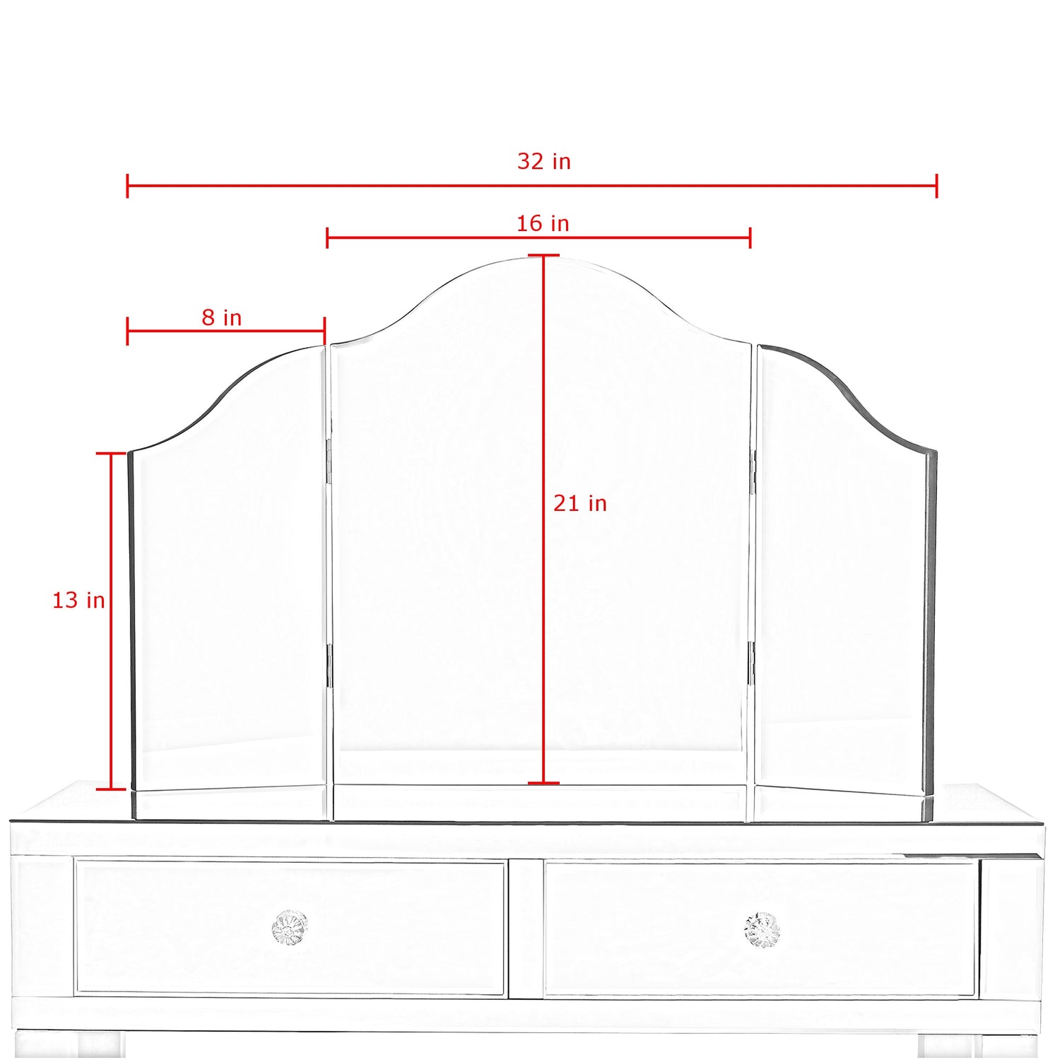 - ELEGANT DESIGN - Designed & expertly crafted high quality mirrored glass - featuring scalloped top & trifold wing design.