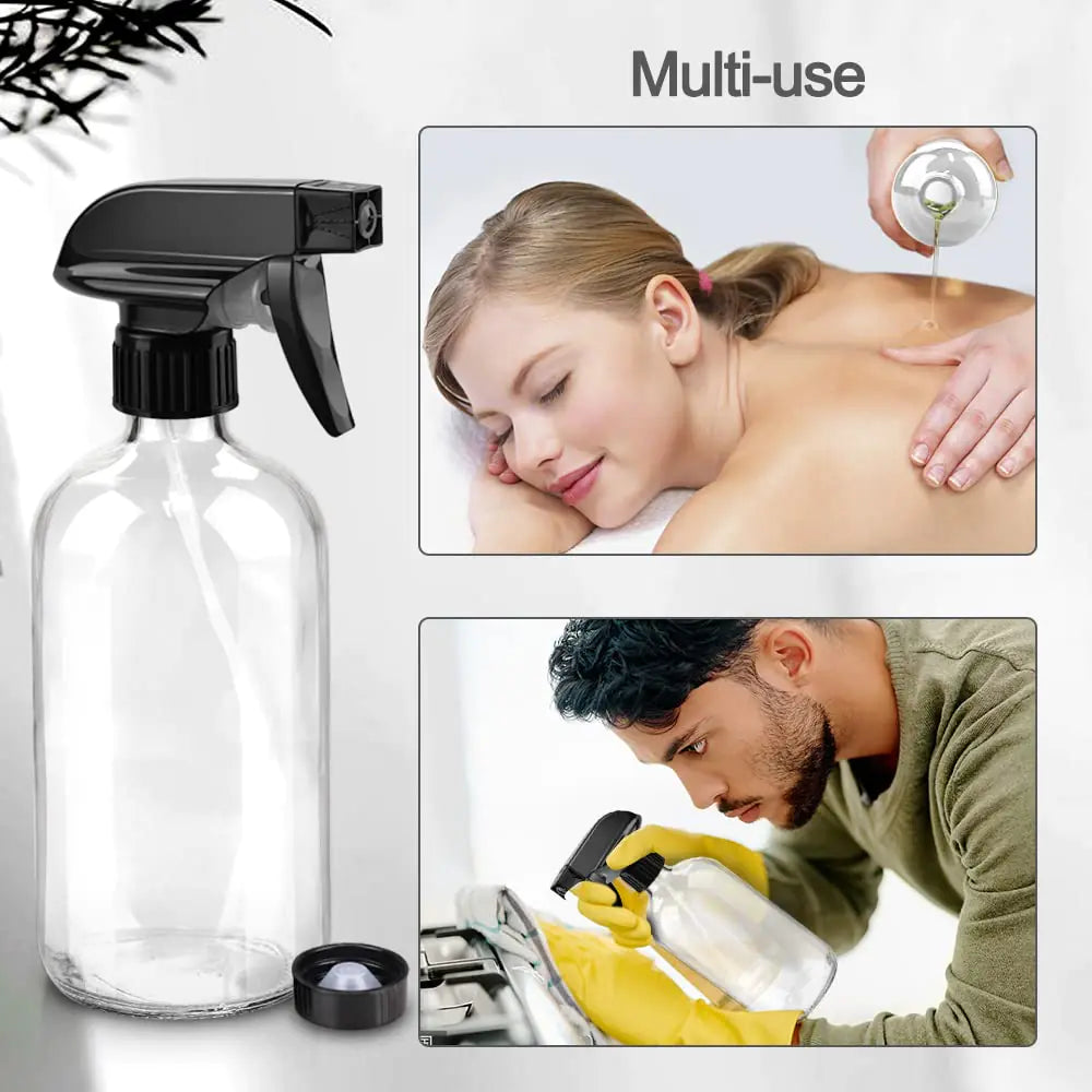 Glass Spray Bottles, 16oz Clear Glass Spray Bottles with Labels & Adjustable Nozzle, Reusable Containers for Cleaning, BBQ, Food, Plants, Alcohol, Essential Oils(3 Pack) 3 Pack