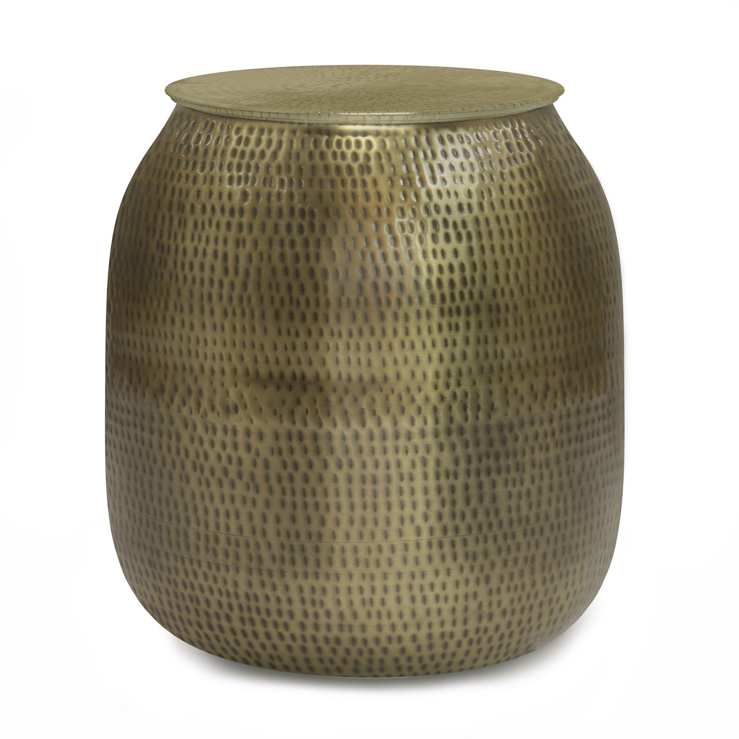 - Features hand hammered detail, Large drum shape with removable top that reveals plenty of storage
