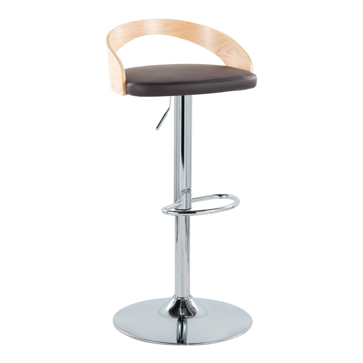 Grotto - Mid-Century Modern Adjustable Height Barstool With Swivel With Oval Footrest (Set of 2) - Chrome / Natural / Brown