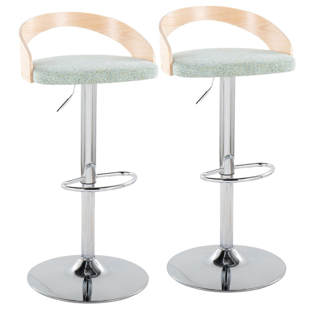 Grotto - Mid-Century Modern Adjustable Height Barstool With Swivel With Oval Footrest (Set of 2) - Chrome / Natural / Light Green