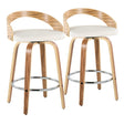 Grotto - Mid-Century Modern Fixed Height Counter Stool With Swivel & Round Footrest (Set of 2) - Walnut / Cream