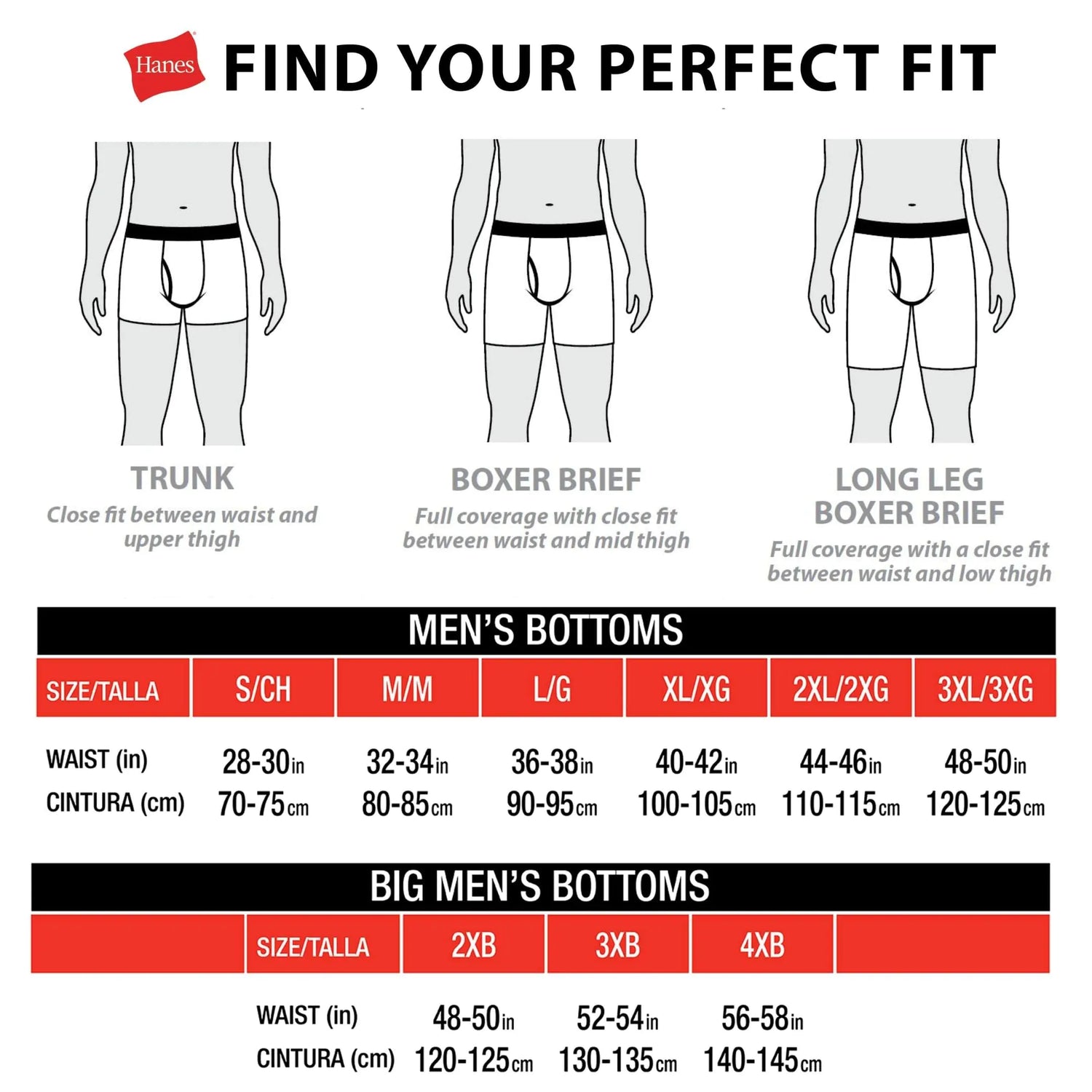 Hanes Total Support Pouch Men's Boxer Brief Underwear, Anti-Chafing, Moisture-Wicking Odor Control, 3-Pack (Reg or Long Leg) Large Regular Leg - Blue/Red/Black - 3 Pack - Regular Leg - Blue/Red/Black - 3 Pack / Large is backordered and will ship as soon as it is back in stock.