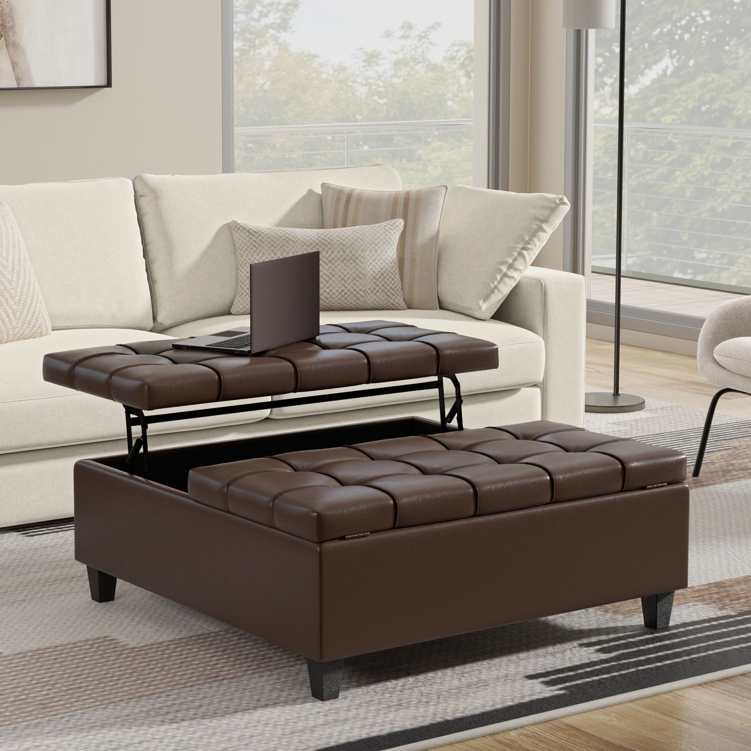 Harrison - Upholstered Coffee Table Storage Ottoman by Couch.com - Light Brown / 36"W x 36"D x 16.5"H / Faux Leather is backordered and will ship as soon as it is back in stock.