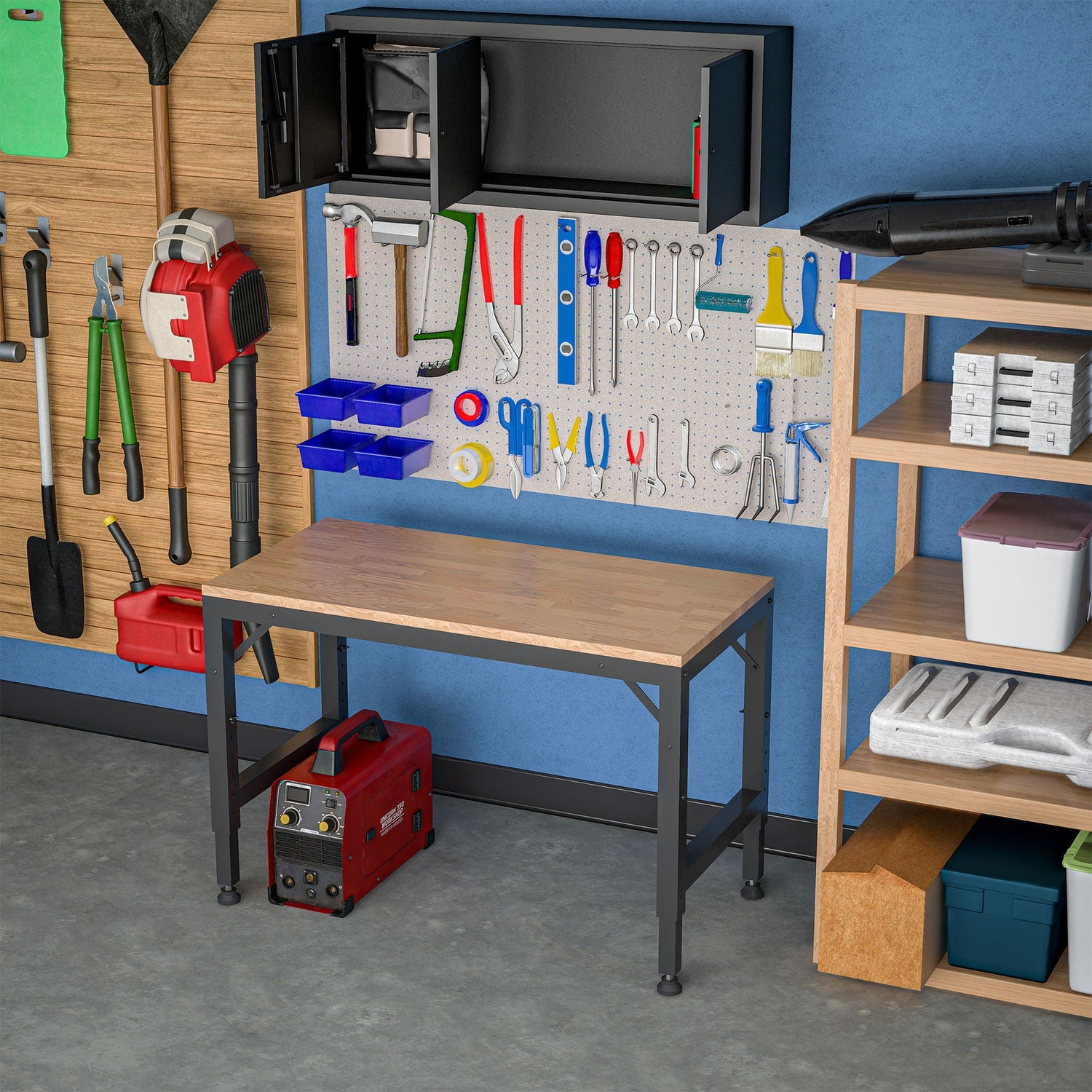 Heavy Duty Adjustable Workbench For Garage, Rubber Wood Shop Table WithRubber Pads, Hardwood Workstation Weight Capacity Over 2000 Lbs - Black by Couch.com