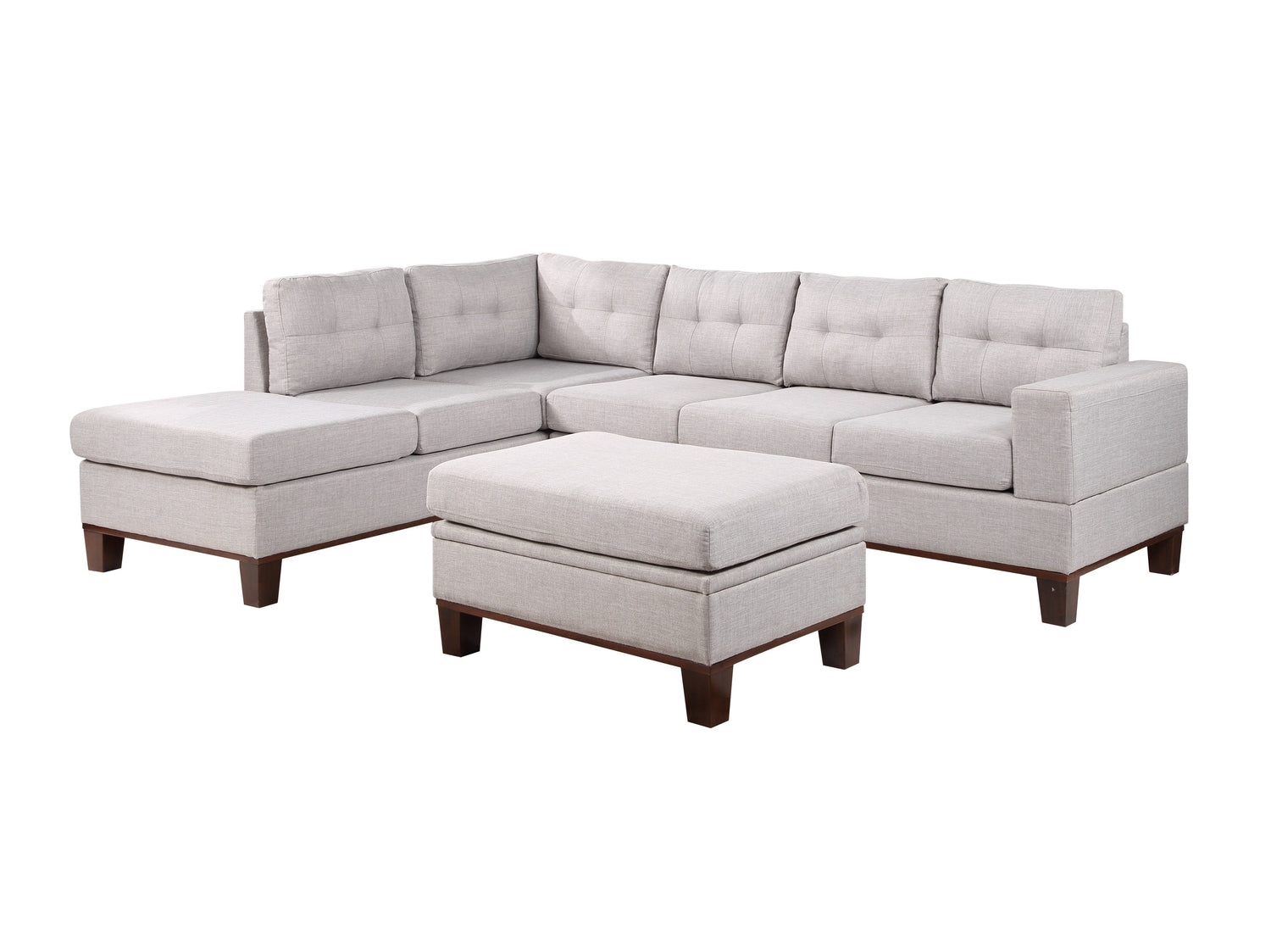 Hilo - Fabric Reversible Sectional Sofa With Dropdown Armrest, Cupholder, And Storage Ottoman - Light Gray