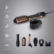 Achieve salon-quality hair from the comfort of your home with the Hot Air Blower Brush. This versatile tool combines the functionality of an oval volumizing brush, a powerful blow dryer, a round curling iron, and a straightening brush, offering you the ultimate hair styling experience.
