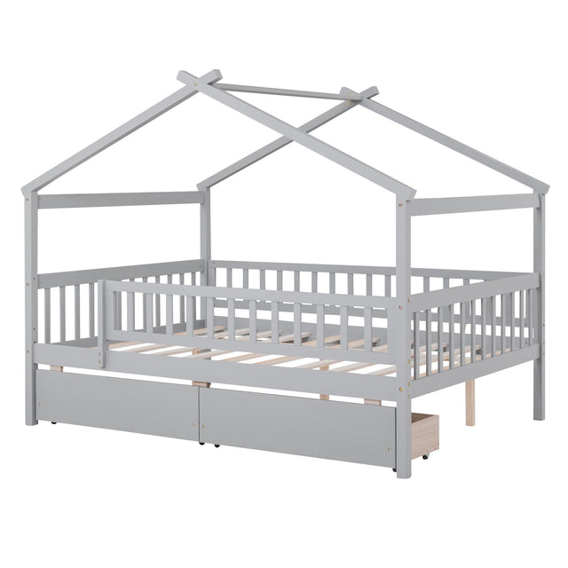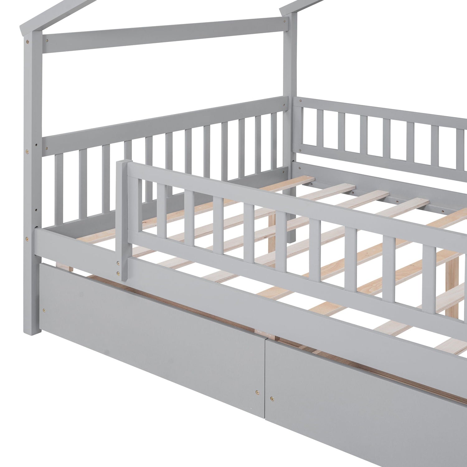 Spacious Storage: The wooden house platform bed includes two built-in drawers, providing ample storage for clothes and toys. This design maximizes space while helping your child develop good organization habits, making it a perfect space-saving solution.