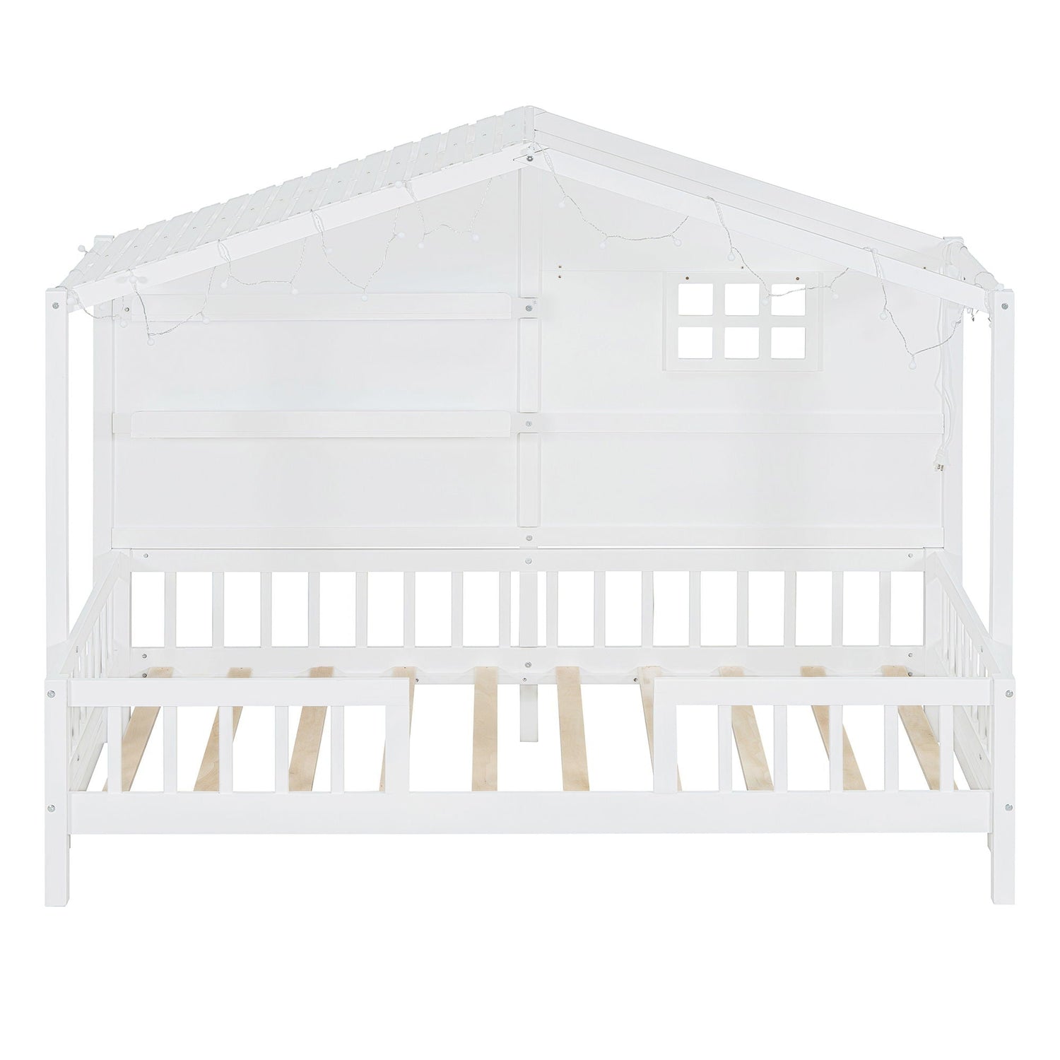 House Bed With Shelves, Window And Sparkling Light Strip On The Roof by Couch.com - White / Twin is backordered and will ship as soon as it is back in stock.