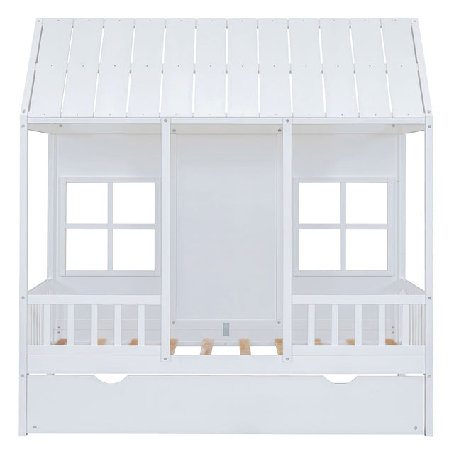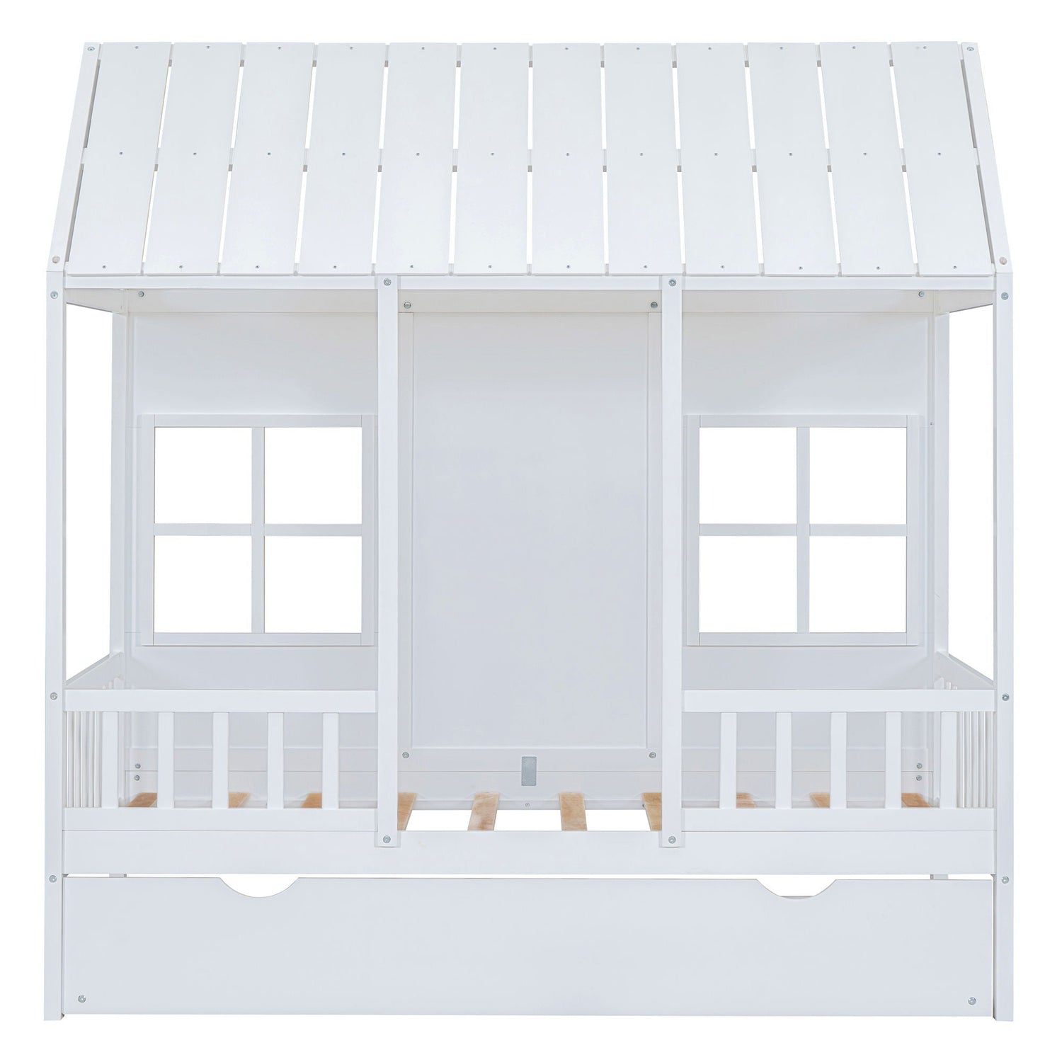 Twin Size House Bed With Twin Size Trundle, Daybed - White