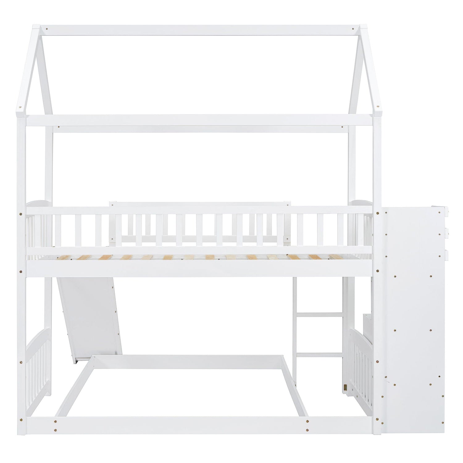 Twin Over Full Bunk Bed With Slide, House Bed With Slide - White