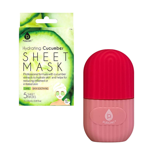 Ice Cube Facial Roller Massager & Hydrating Cucumber Sheet Masks – Your Ultimate Skincare Refresh Kit by Pursonic