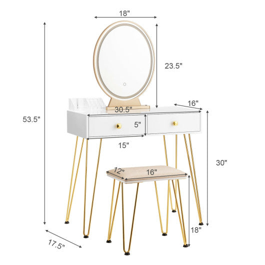 Industrial Makeup Dressing Table with 3 Lighting Modes-White