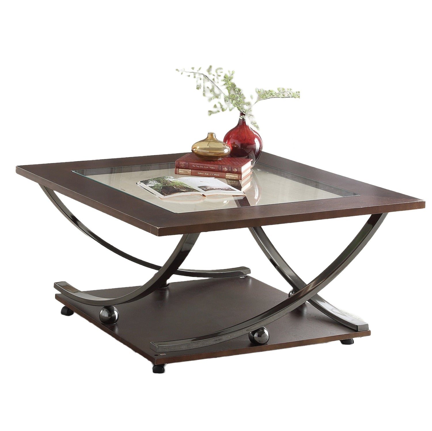 Isiah - Clear Glass Nickel Coffee Table - Dark Brown