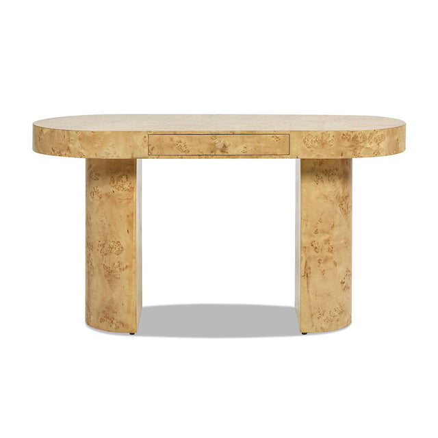 Jesse - Single Drawer Oval Computer Desk - Warm Natural Brown Burl