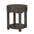 - The Jonah collection brings an end table designed for convenience. Charge up to 2 devices through the USB charging port installed on the back of the end table. The round bottom shelf helps store books, decorations, portraits, etc. Put this next to your sofa and have your charging phone and books within arm's reach!