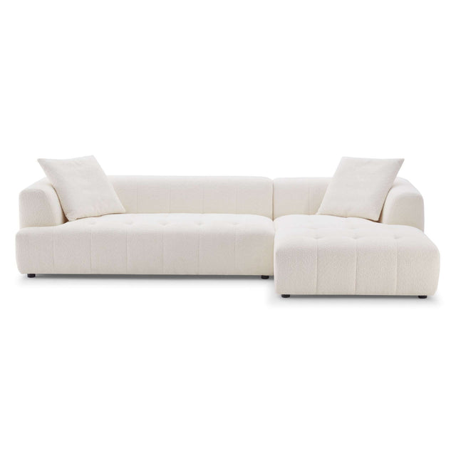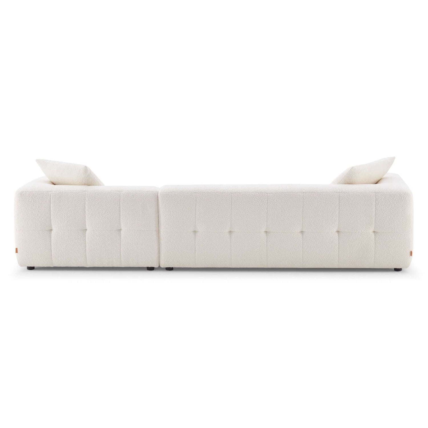 - Elegant Upholstery: The Kaynes Corner Sofa is upholstered in a sophisticated and durable boucle fabric, enhancing both its aesthetic appeal and its ability to withstand regular use.