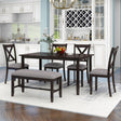 Kitchen Dining Table Set Wooden Rectangular Dining Table, 4 Chairs And Bench Family Furniture by Couch.com - Dark Brown / 6 Pc. Table, 4 Chairs, Bench is backordered and will ship as soon as it is back in stock.