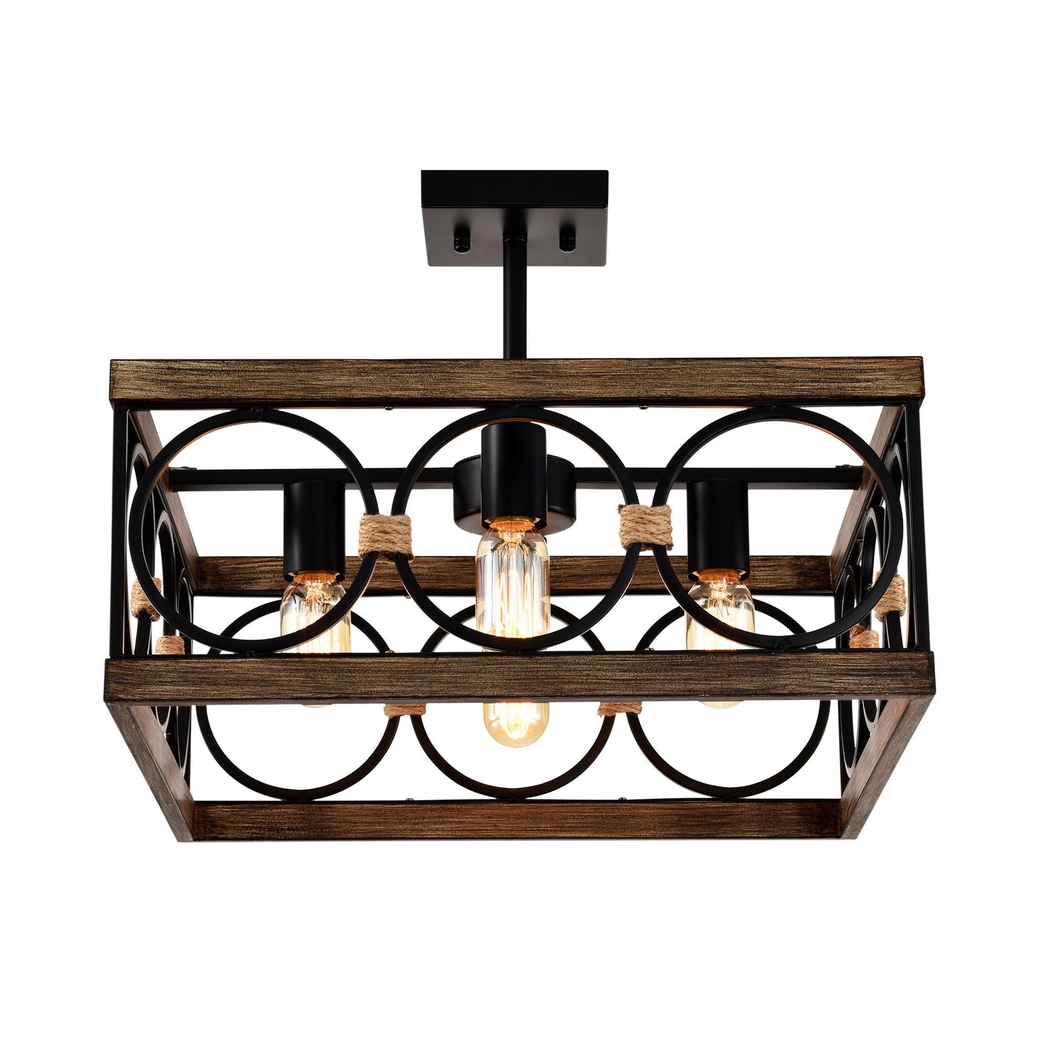 Kitchen Island Lights Ceiling Light Farmhouse Dining Room Light Fixture, Wood And Metal Rectangular Ceiling Light, Ceiling Lighting For Living Room, Conference Room, Home Office by Couch.com - Black / 18.6"W x 18.6"D x 15.19"H is backordered and will ship as soon as it is back in stock.