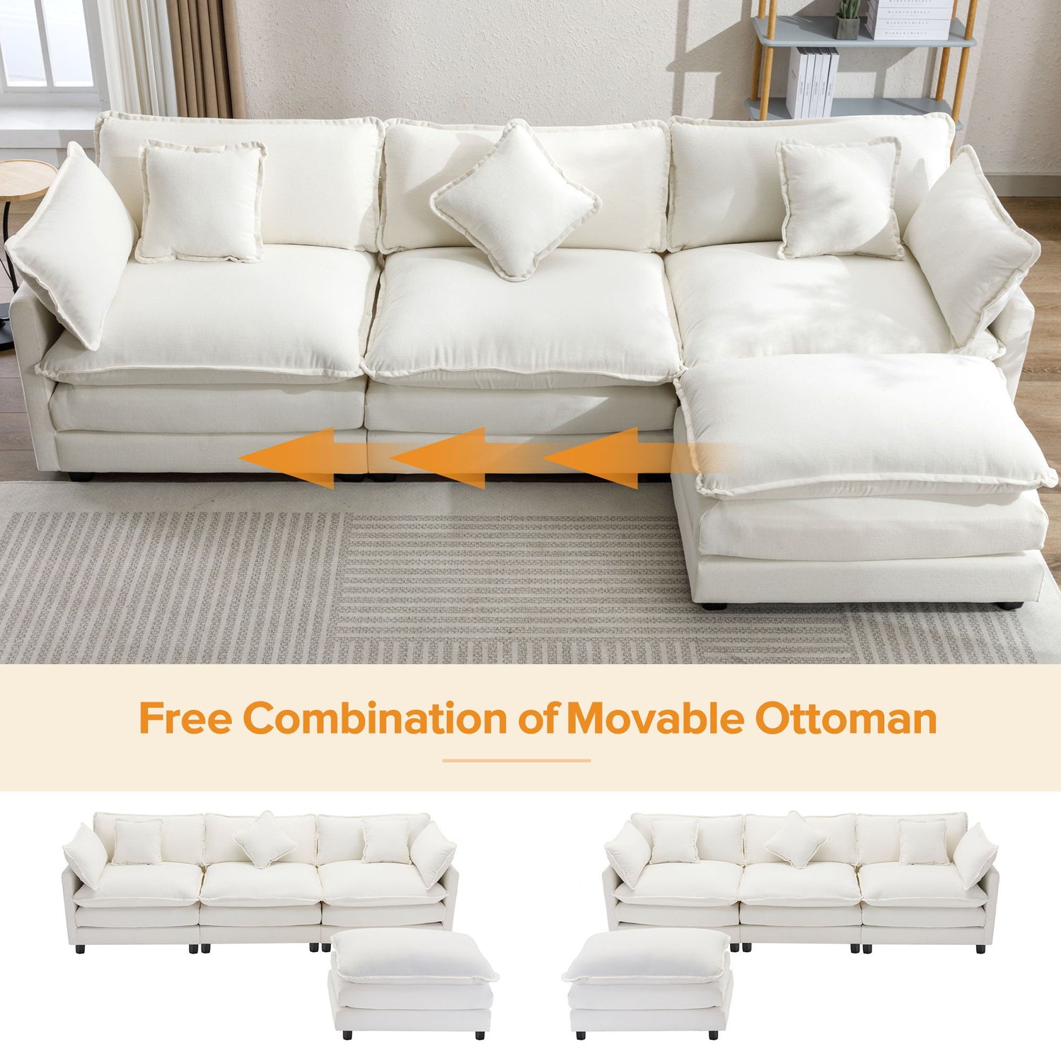 L-Shape Chenille Upholstered Sofa For Living Room Modern Luxury Sofa Couch With Ottoman, 5 Pillows - Beige