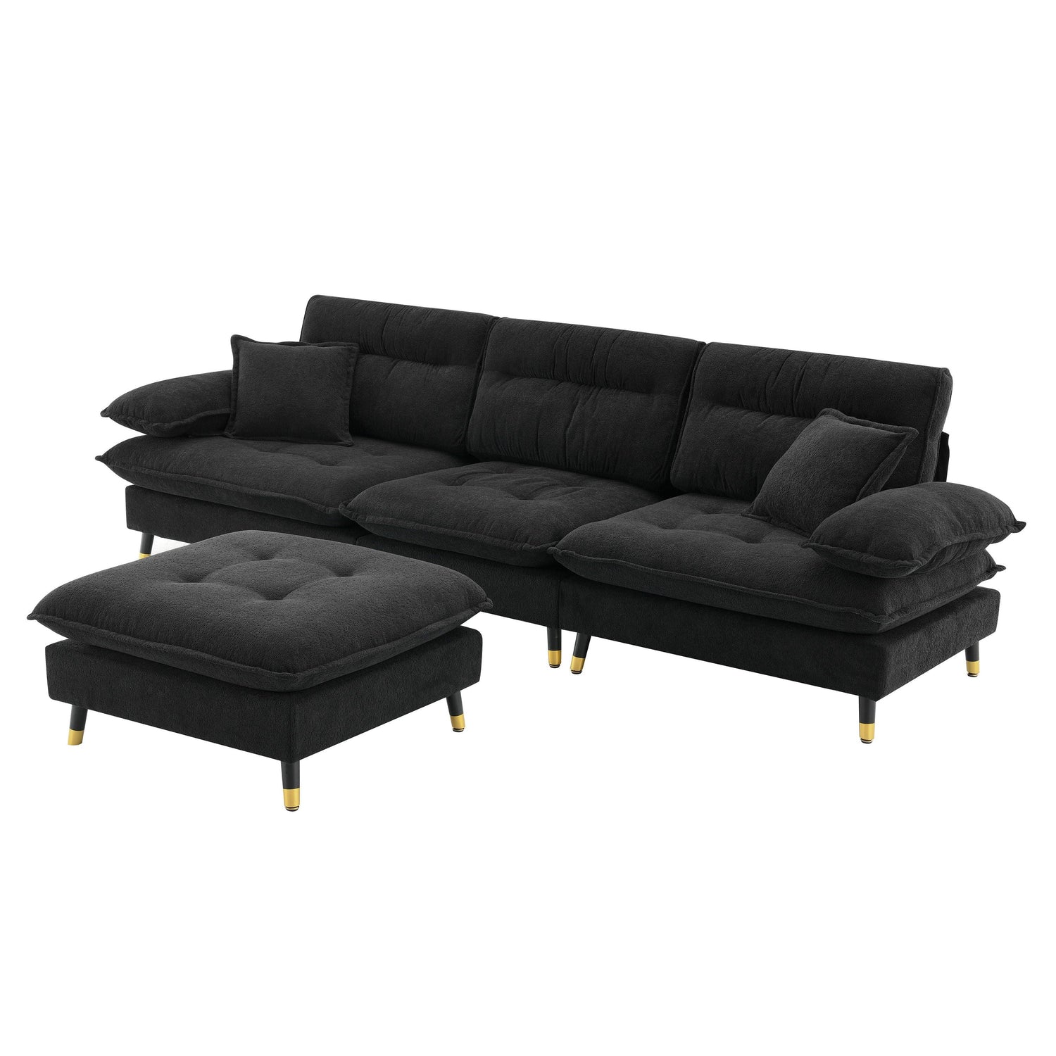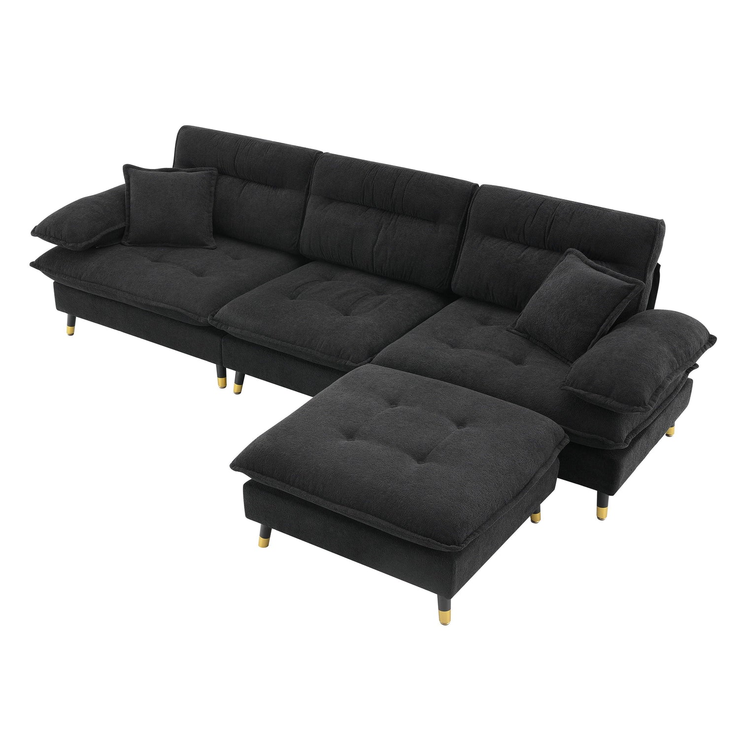 L Shaped Convertible Sectional Sofa 4 Seat Tufted Couch Set With Two Tone Adjust Legs Cloud Movable Ottoman - Black