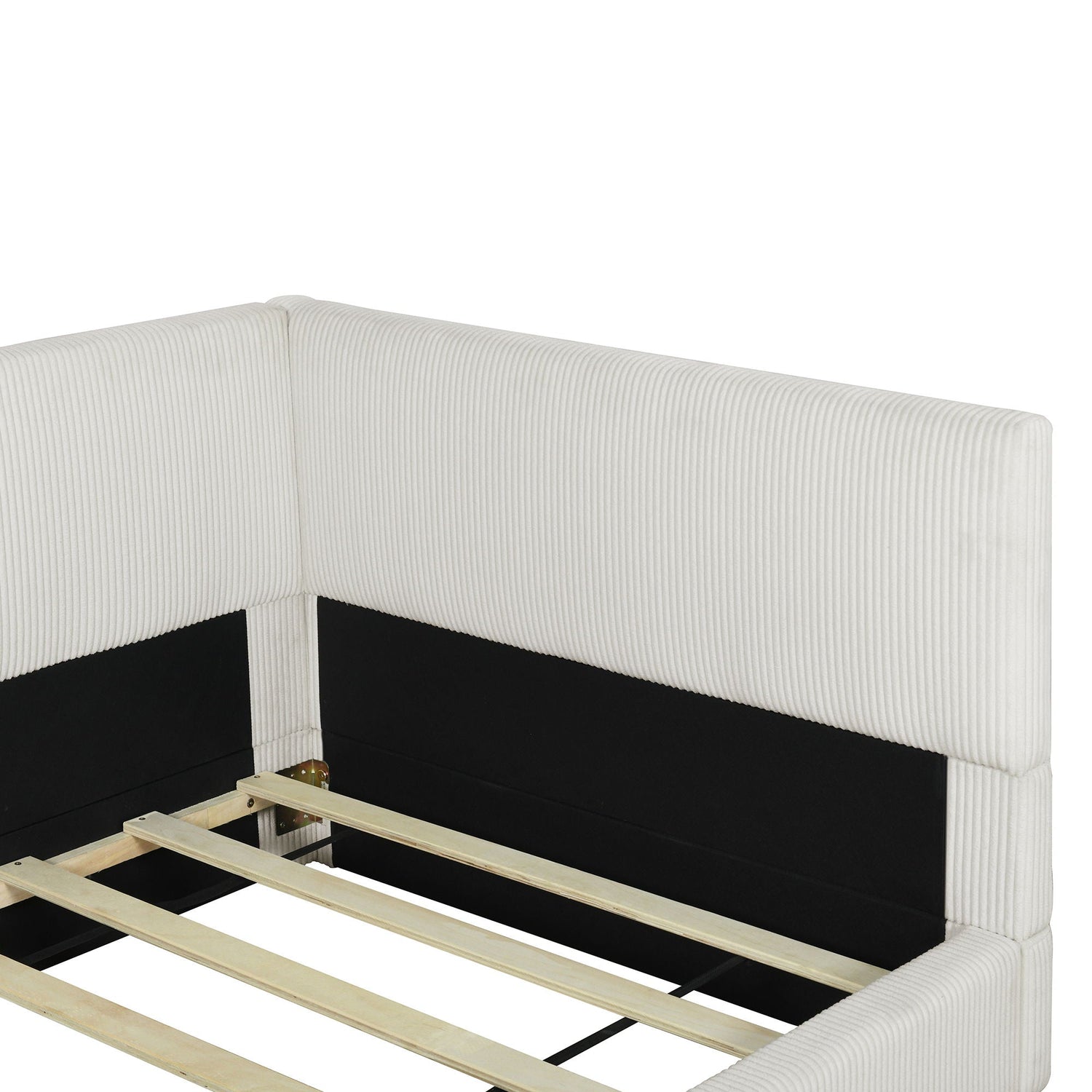 Elevate your living space with this luxurious L-shaped daybed, crafted from plush corduroy fabric. Its timeless design and thick, high-quality cushioning provide unparalleled comfort and support. Perfect for lounging or entertaining guests, this daybed offers both style and function, making it an ideal addition to any home.