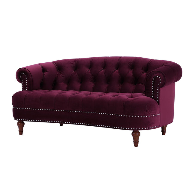 - Luxurious Comfort: Upholstered in high-quality woven burgundy velvet fabric, the loveseat is filled with premium high-density flame-retardant foam, providing a medium firm feel for luxurious comfort.