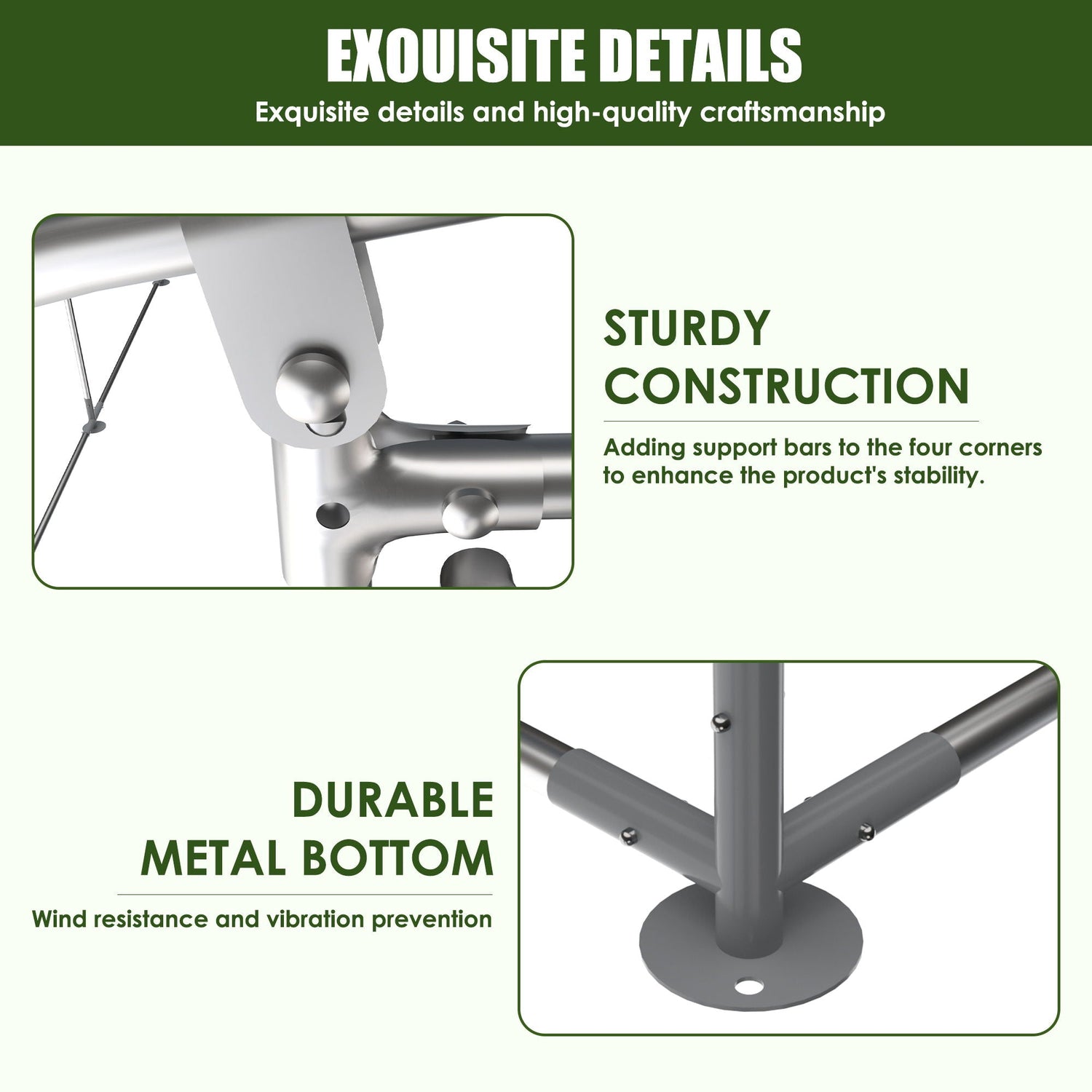 - Durable Steel Structure: Made of high-quality steel frame with additional support columns and triangular supports for long-term use.