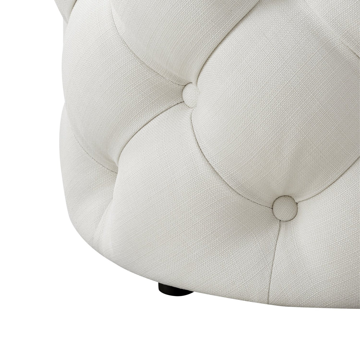 - MID-CENTURY MODERN OTTOMAN - An elegant fabric upholstered mid-century ottoman with tufted round design and generous padding provides gentle splendor while entertaining or relaxing. Enhance your room with this beautiful standout ottoman and give your home a touch of luxury.