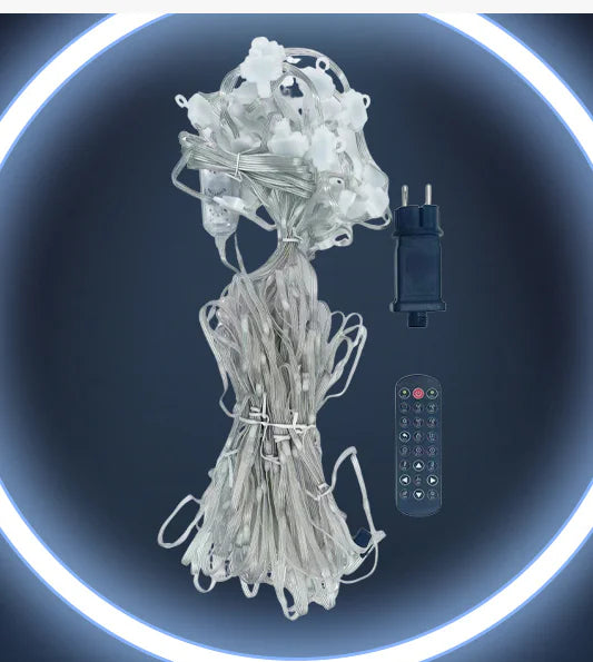 The LED curtain light comes in various sizes: 1x1M, 2x2M, and 3x3M, each equipped with 400 LED beads to provide brilliant 360-degree lighting. Operating at a low input voltage of 5V and output power of 15W, the light remains cool to the touch, promoting safe usage without the risk of overheating.